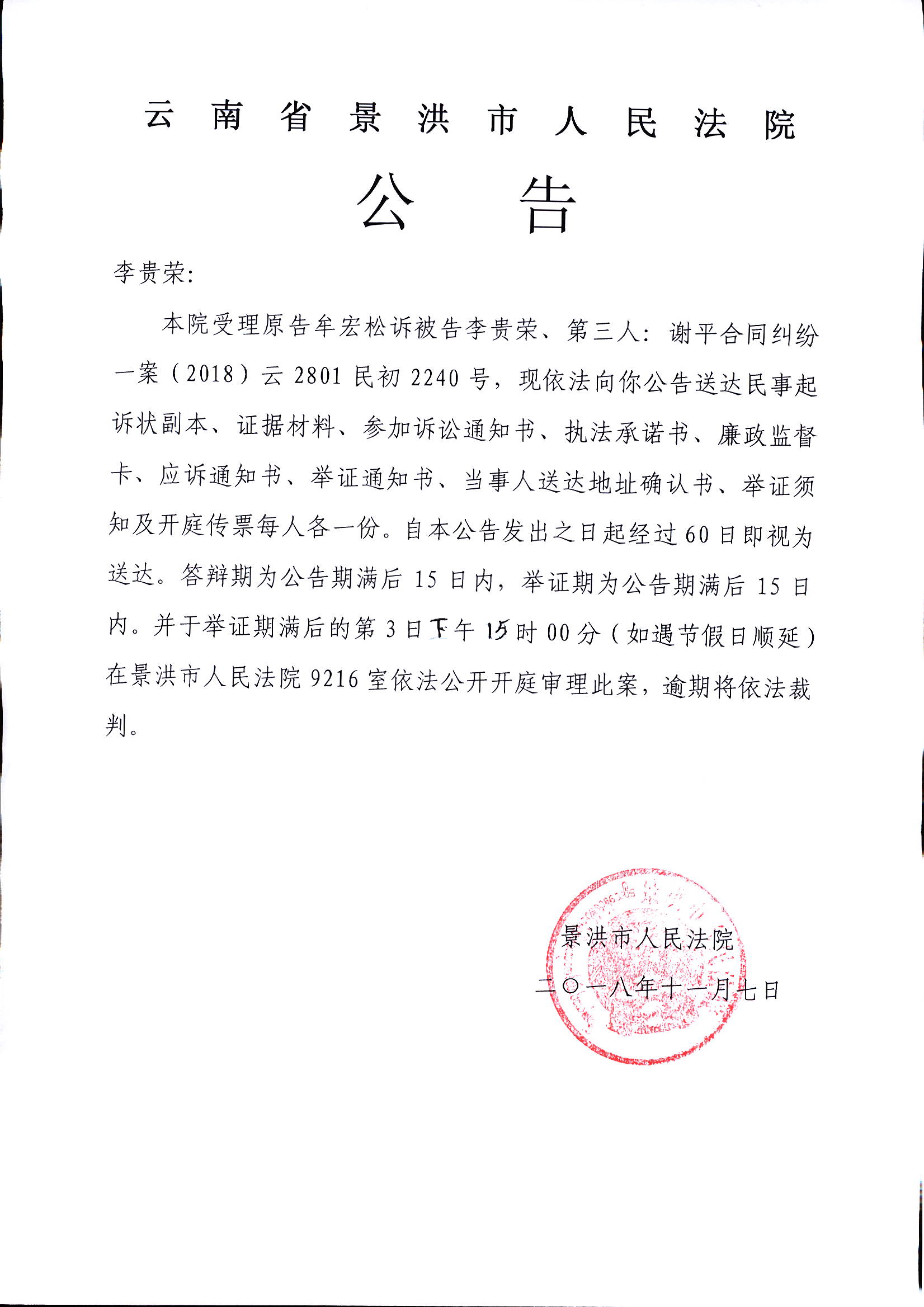 公告(李贵荣)