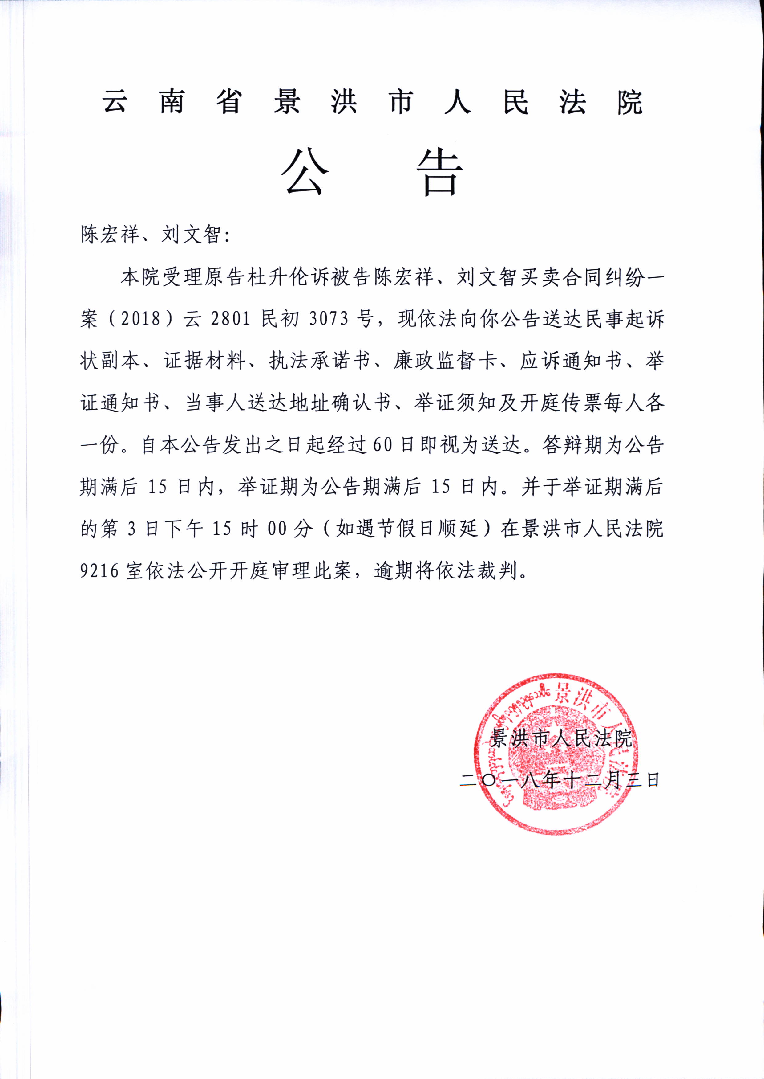 开庭公告:
