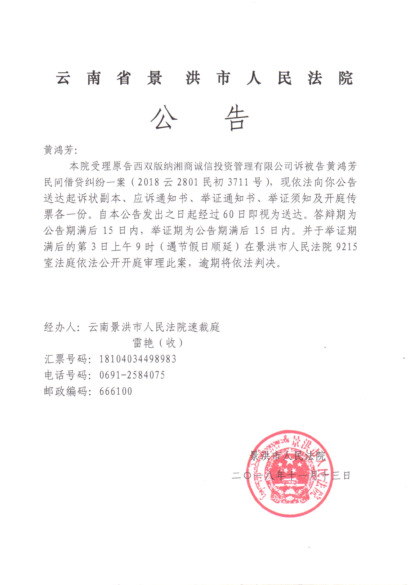 开庭公告: