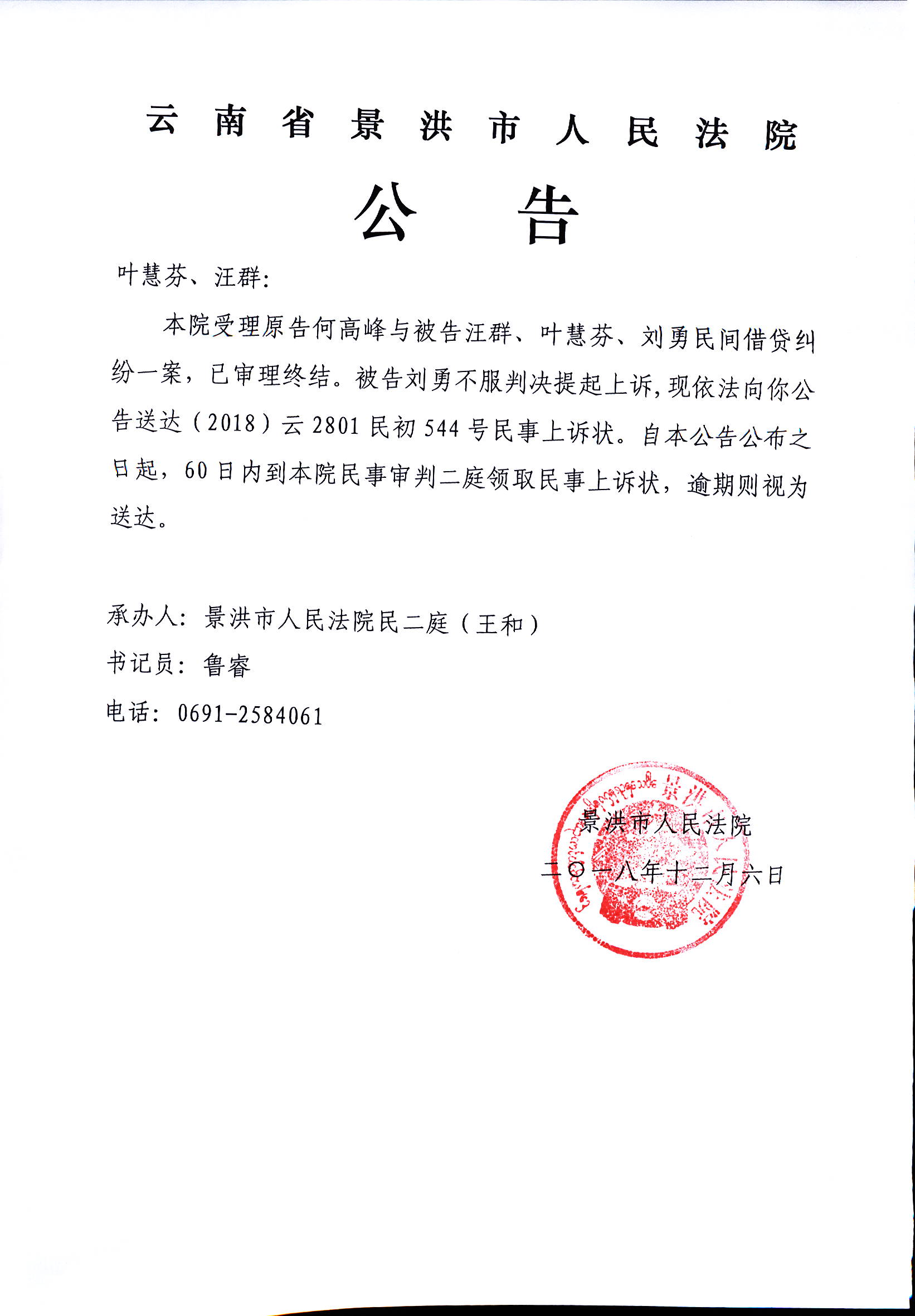 (公告)叶慧芬、汪群