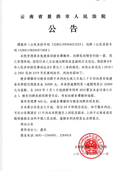 作者 :景洪市人民法院 来源:勐罕人民法庭 访问次数 :