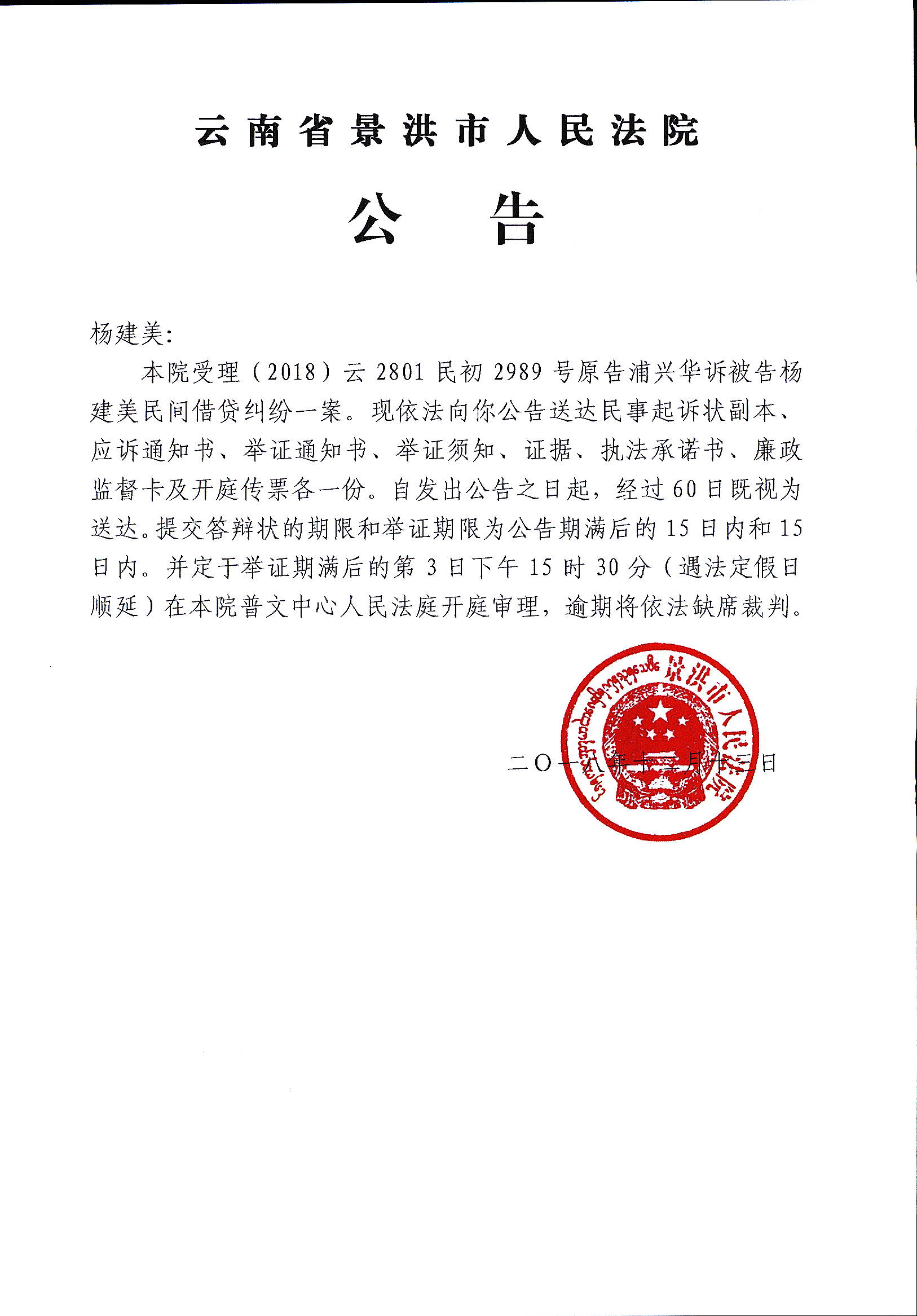 开庭公告: