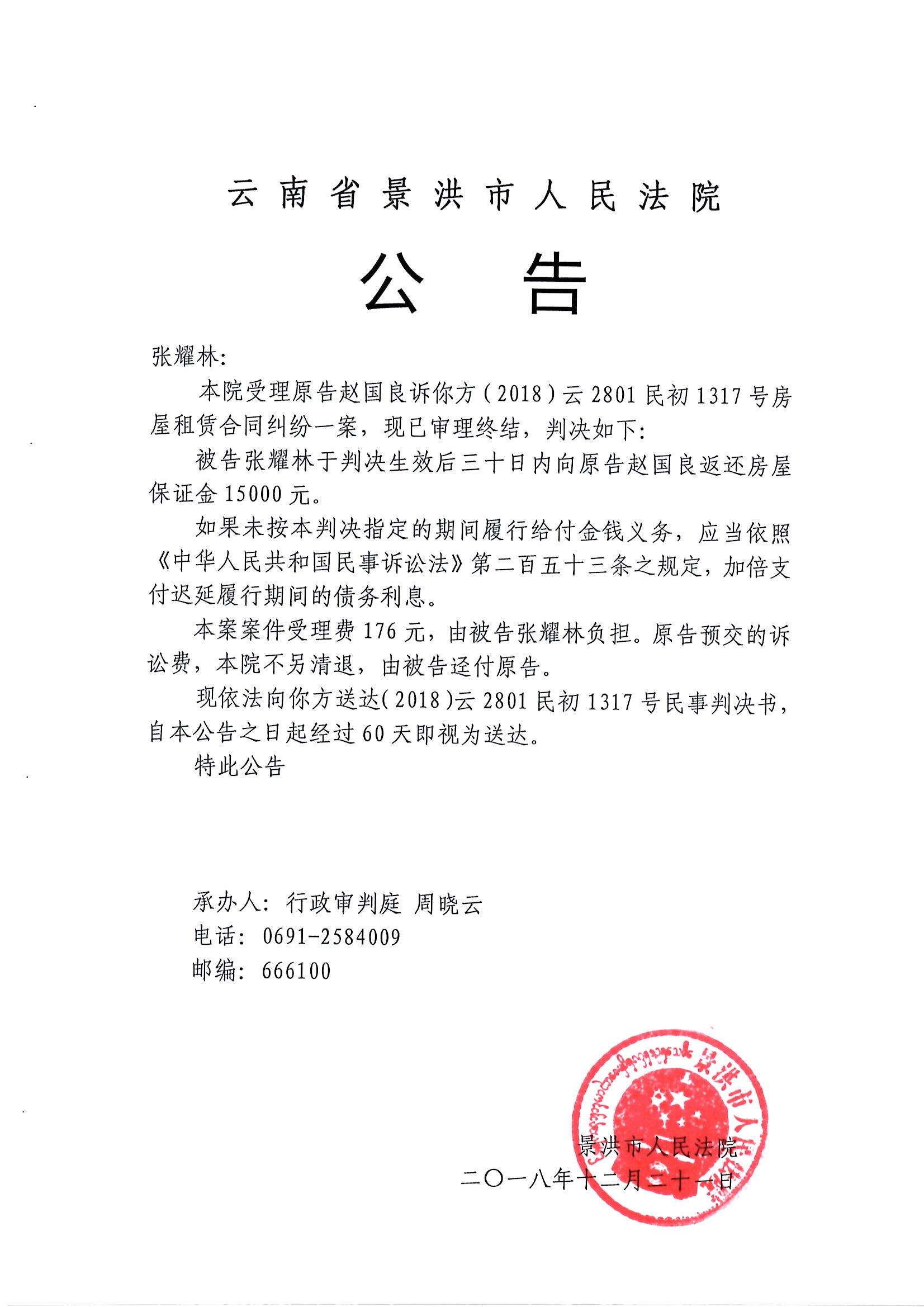 (公告判决)张耀林