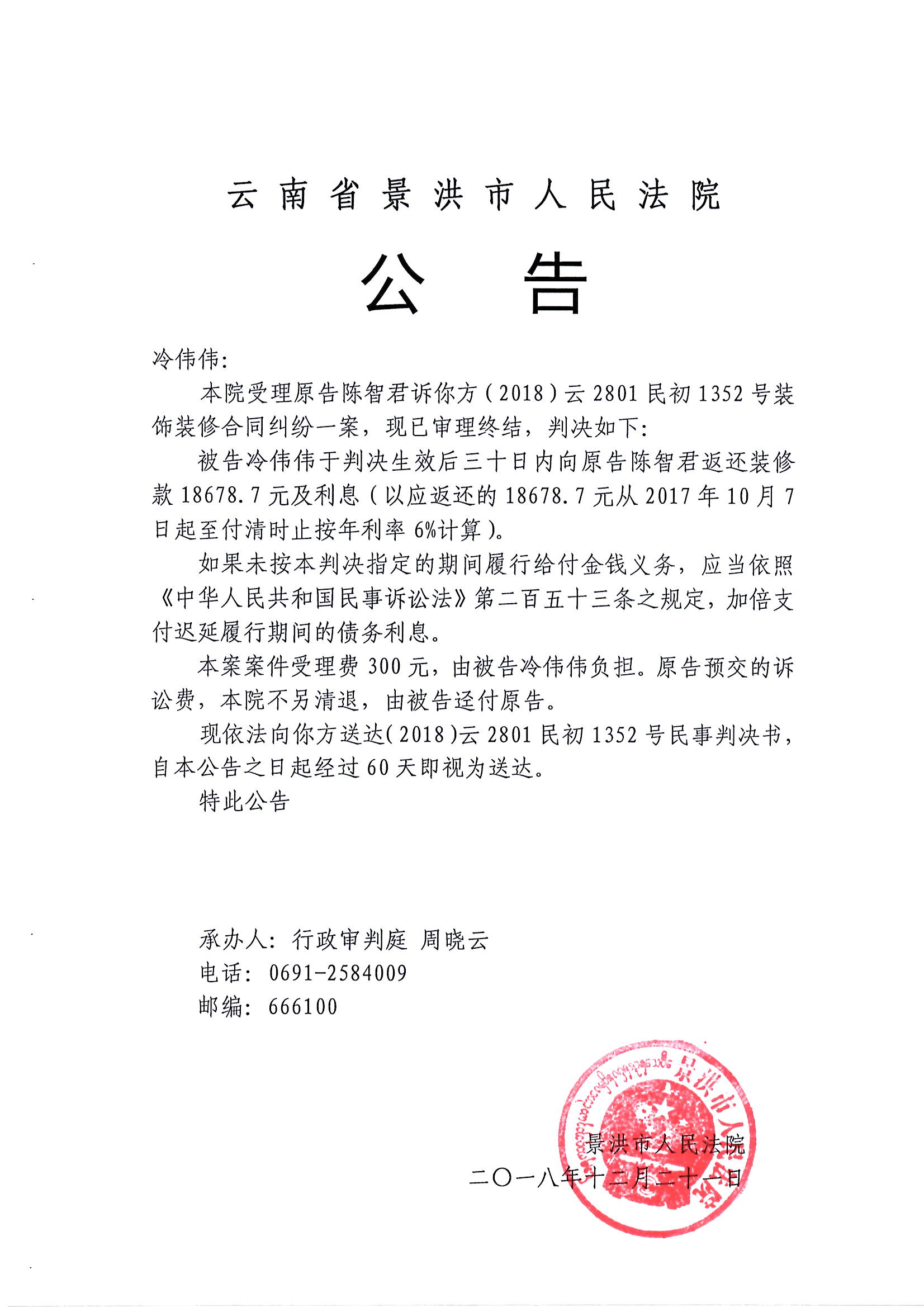 (公告判决)冷伟伟