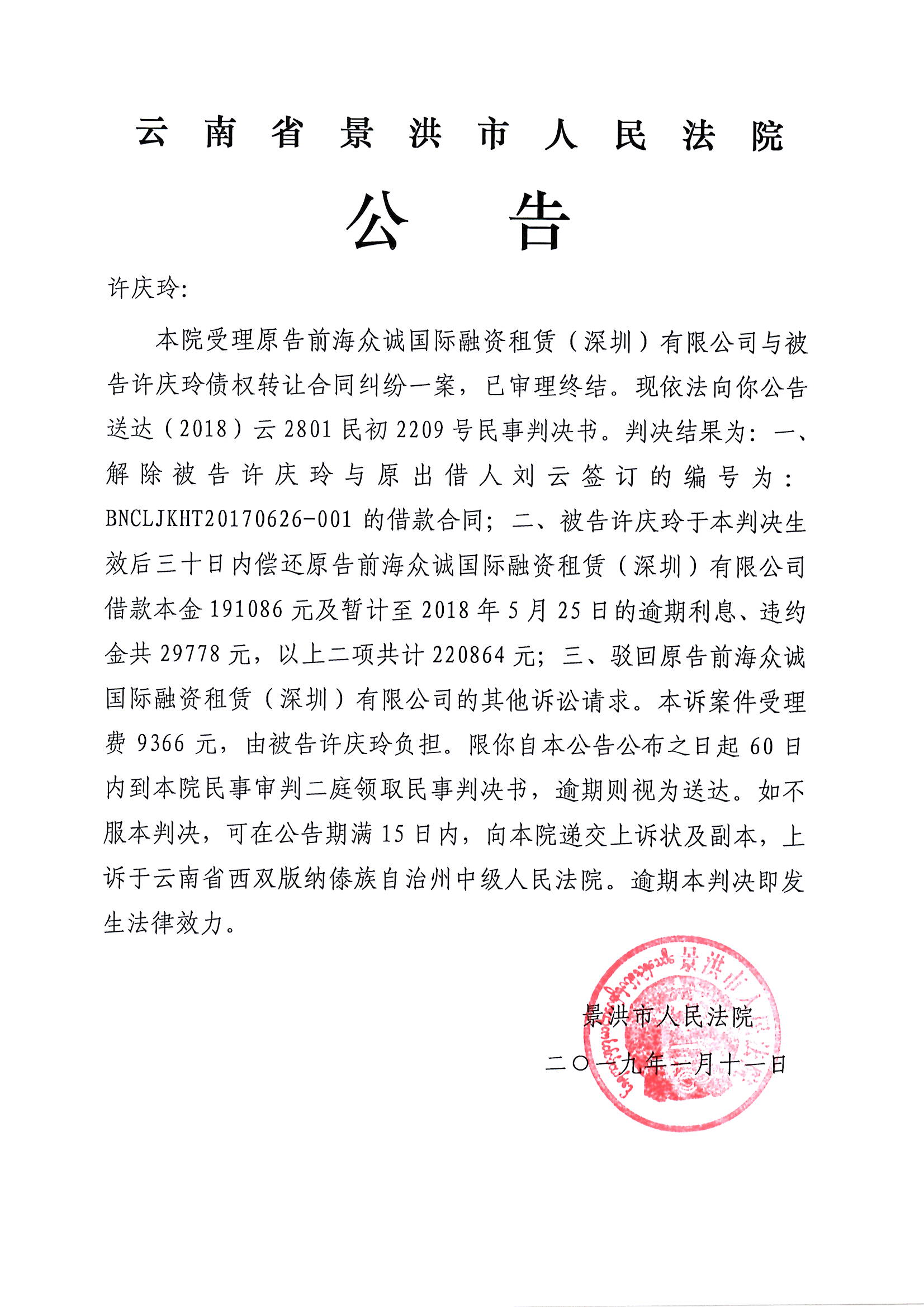 公告(许庆玲)