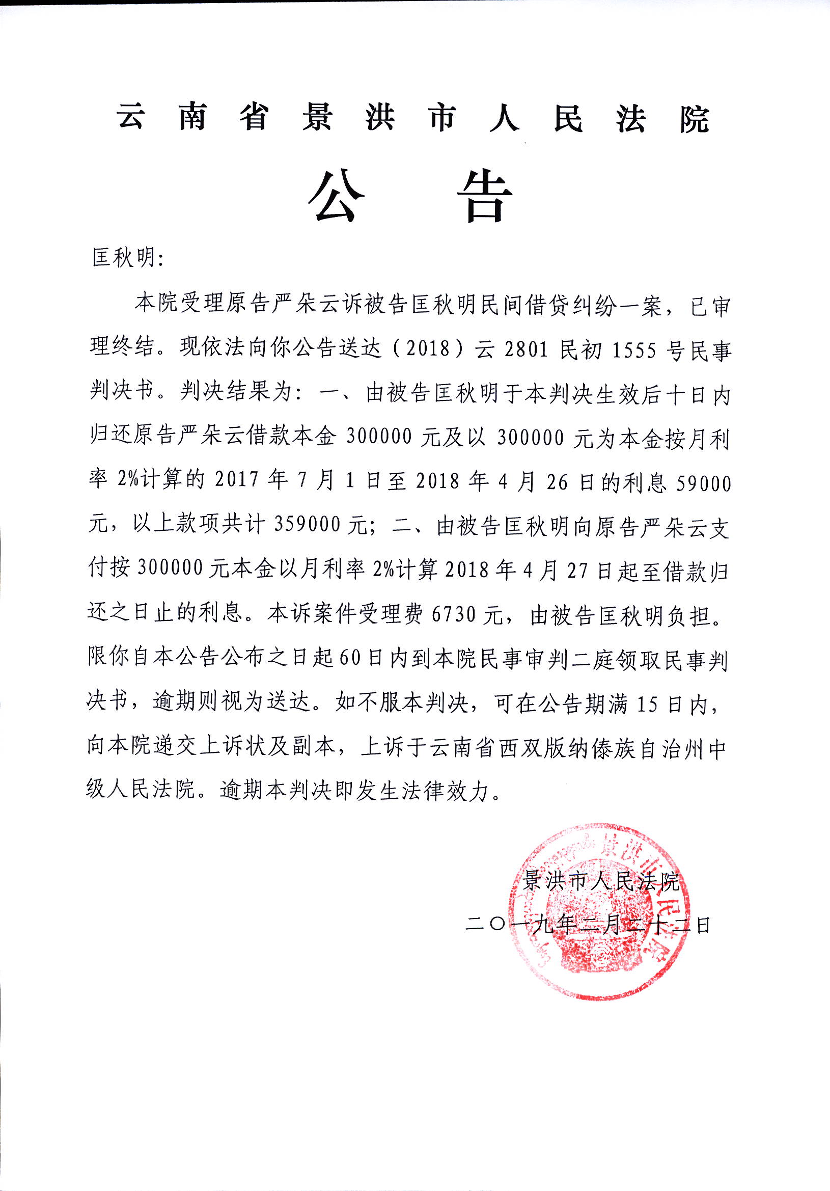公告(匡秋明)