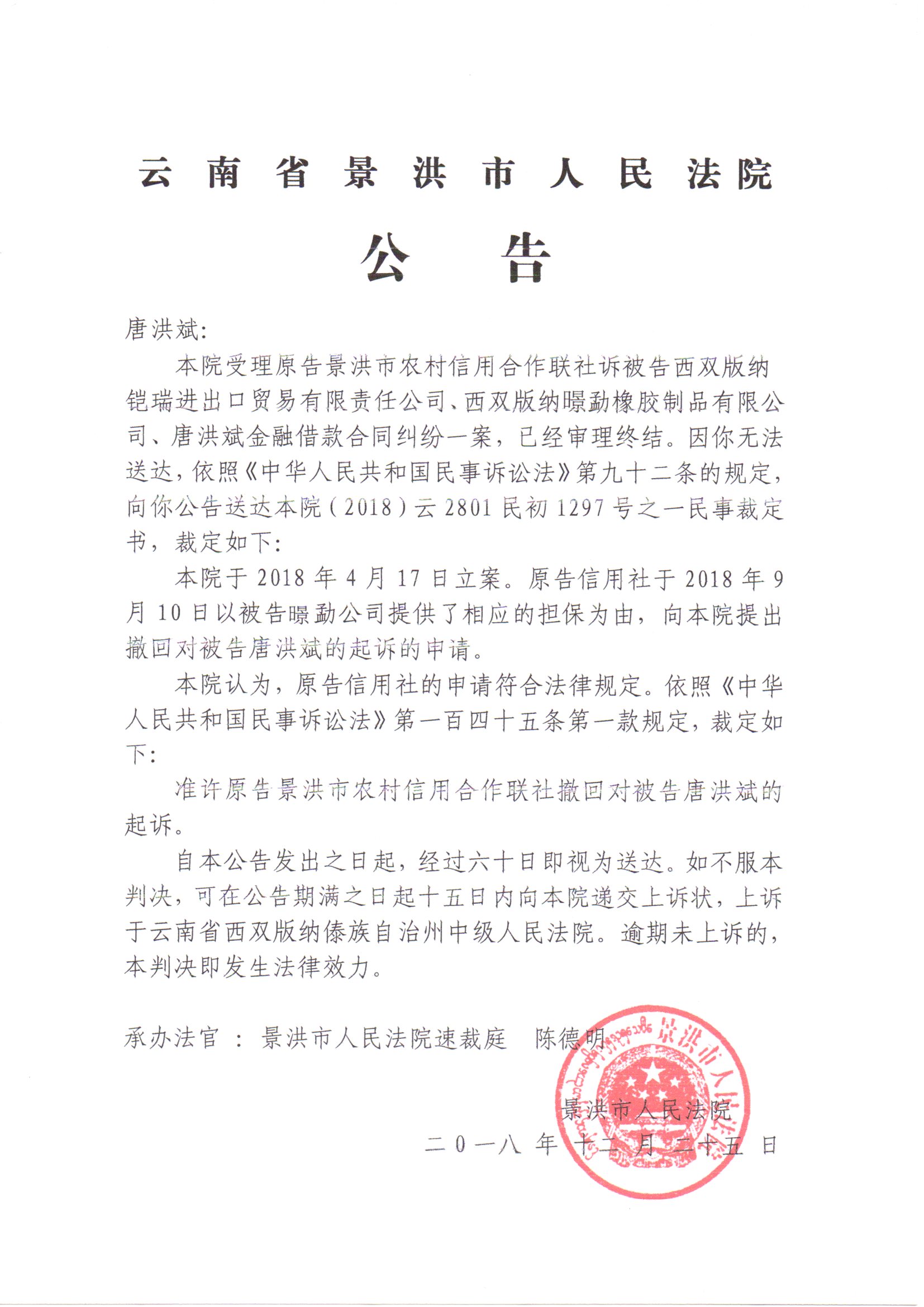 唐洪斌(撤诉裁定)