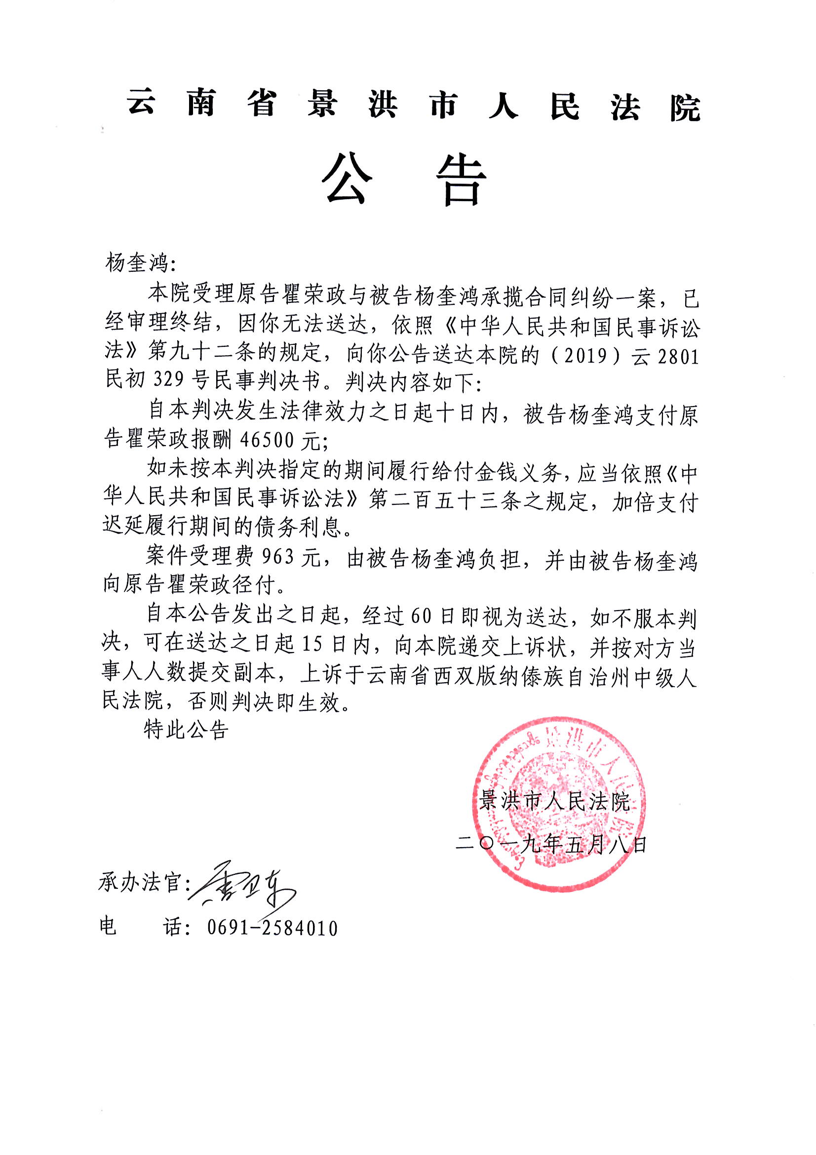杨奎鸿(判决公告)