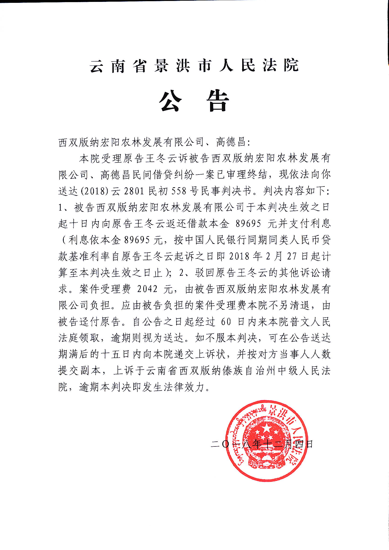 西双版纳宏阳农林发展有限公司、高德昌558号判决公告