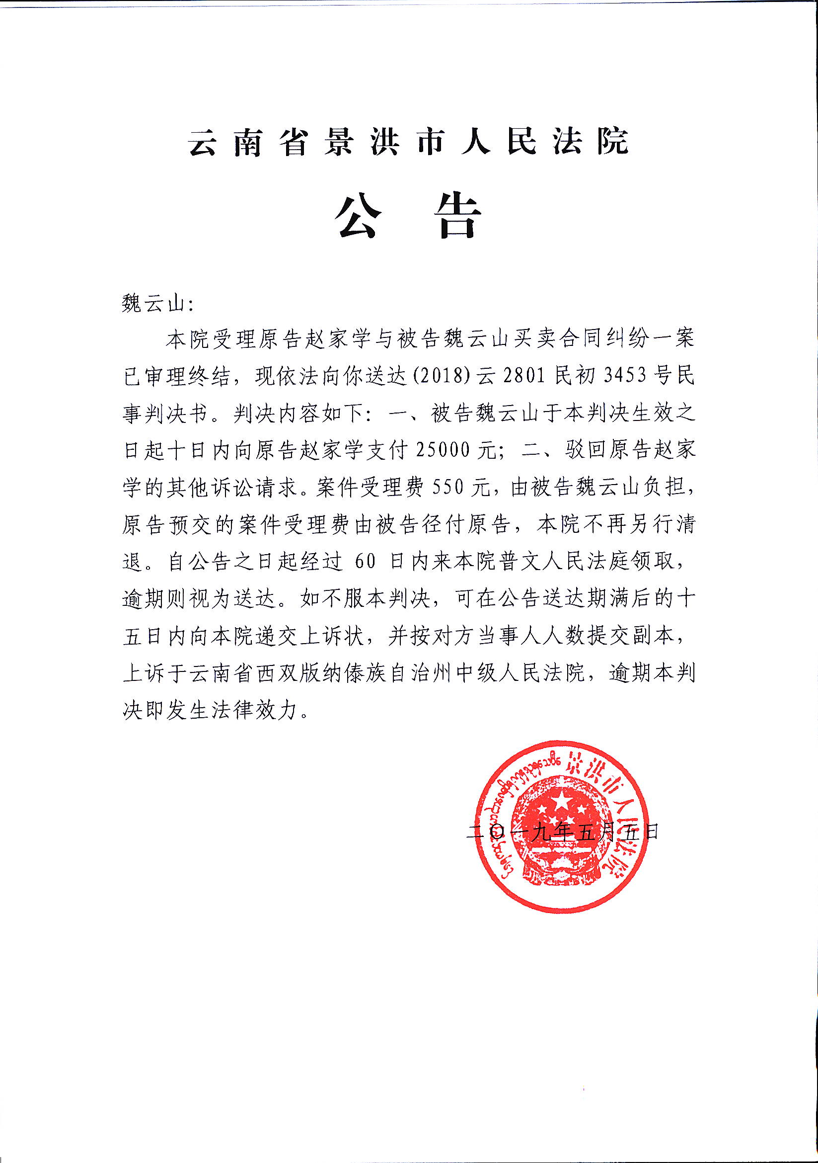 魏云山3453号判决公告