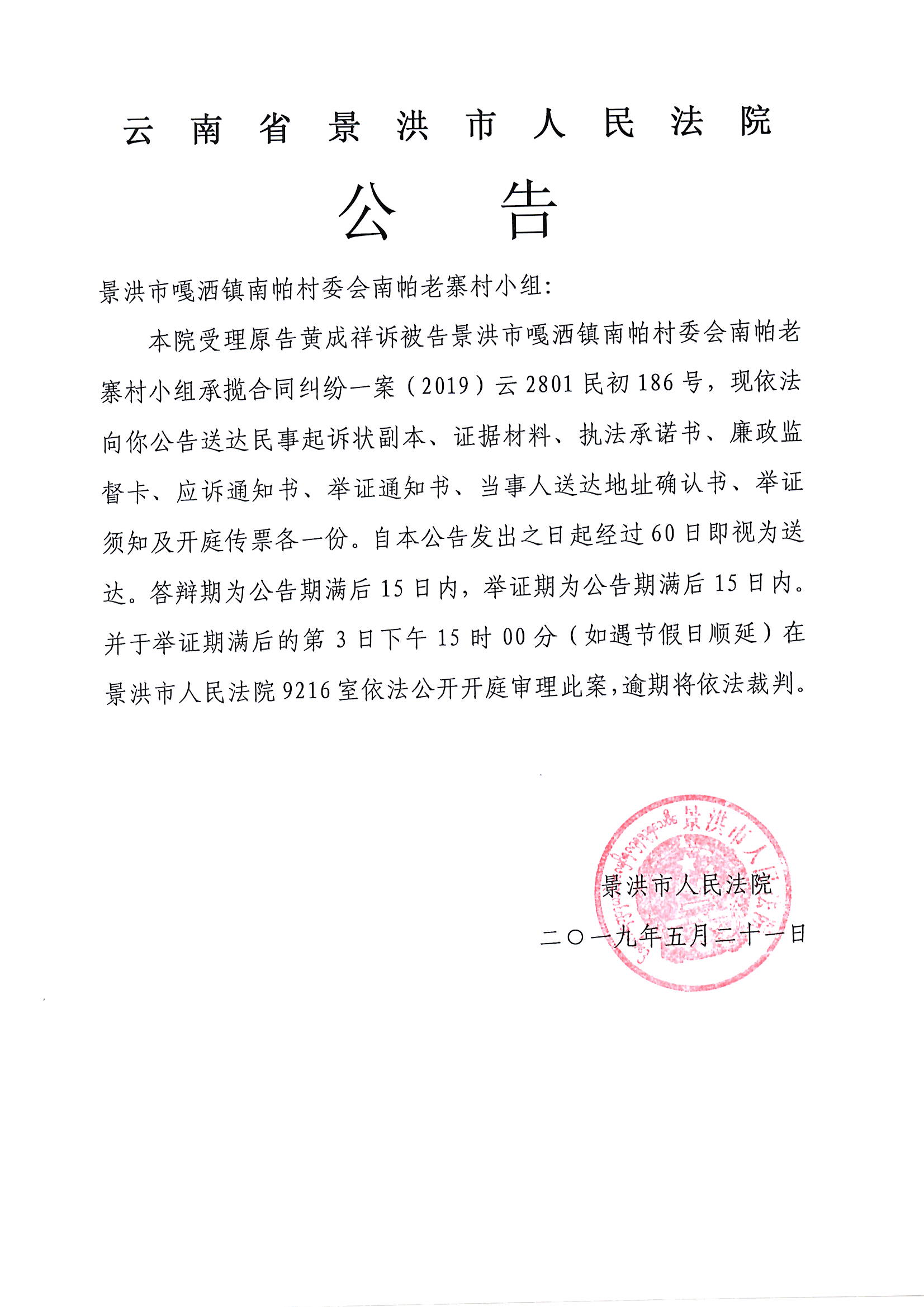 公告(景洪市嘎洒镇南帕村委会南帕老寨村小组)