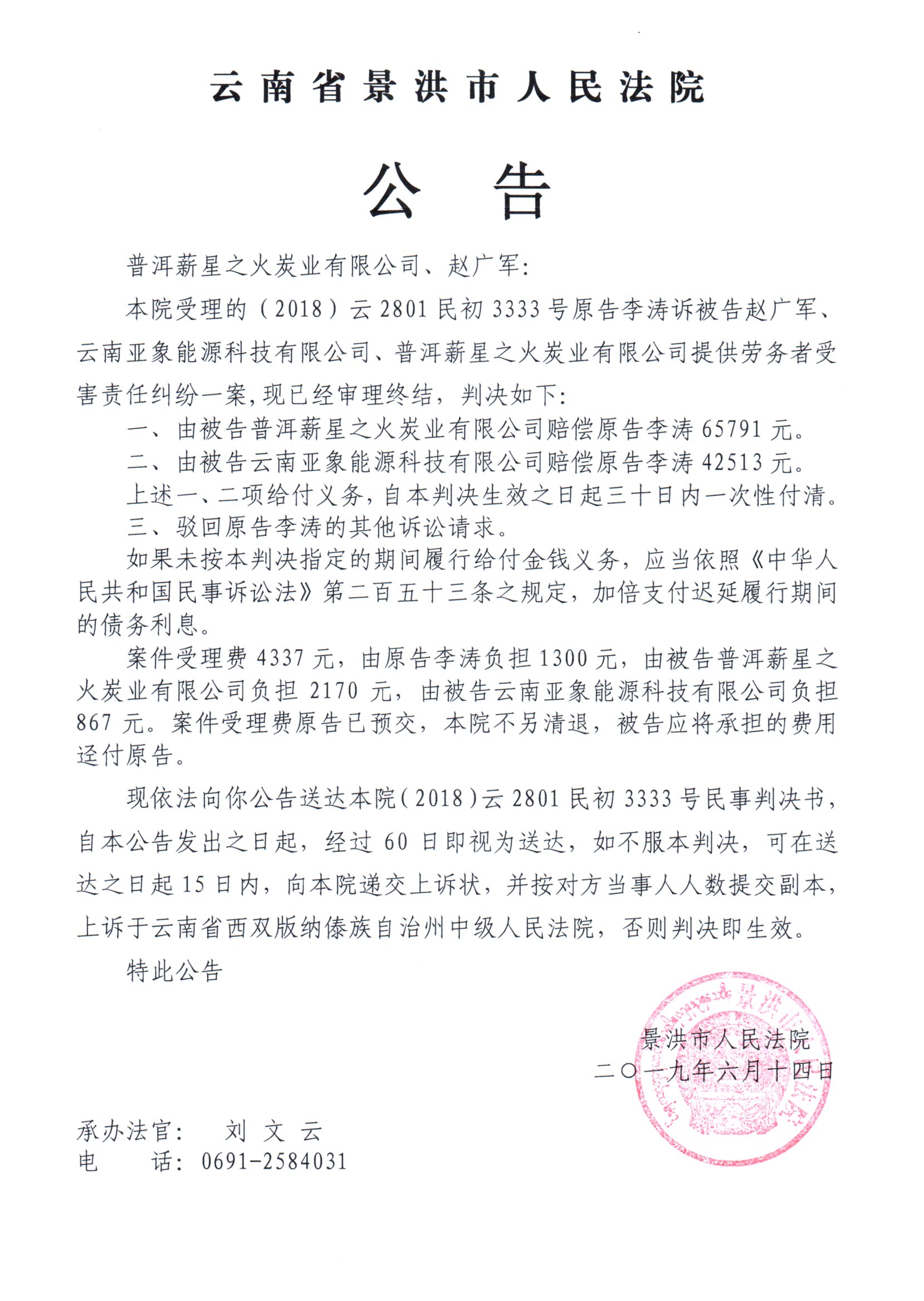 普洱薪星之火炭业有限公司、赵广军(判决书)
