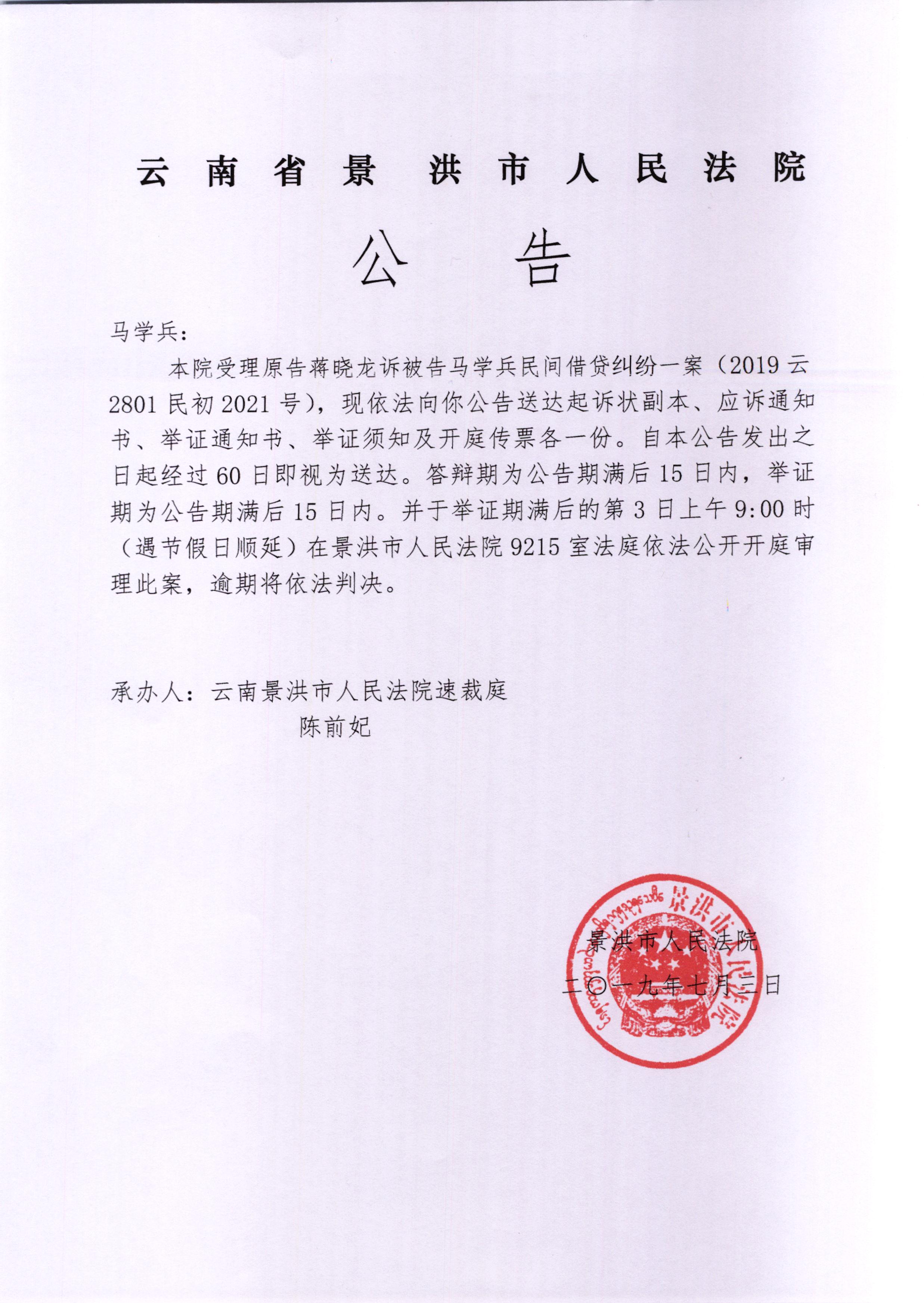 开庭公告: