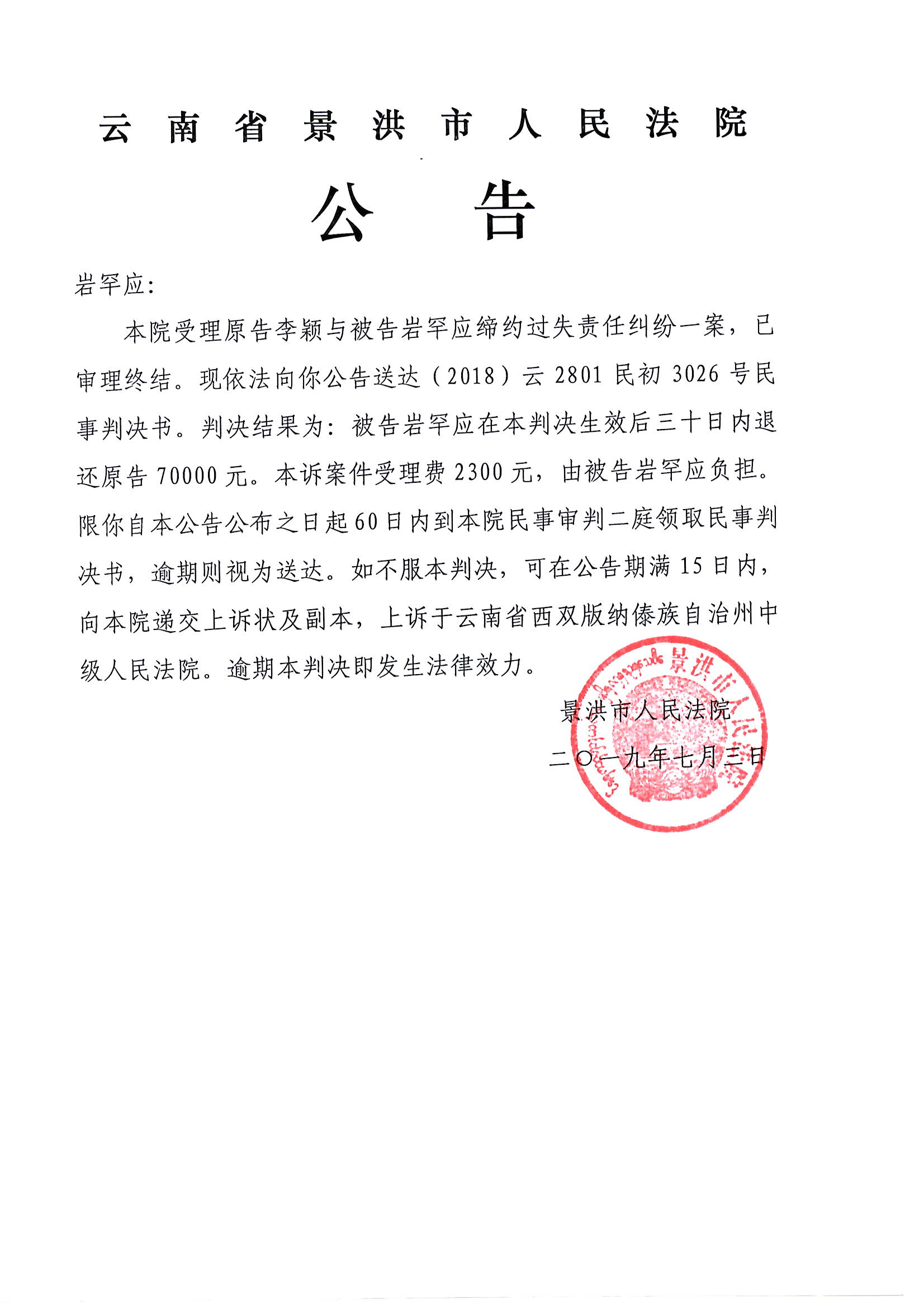 公告(岩罕应)