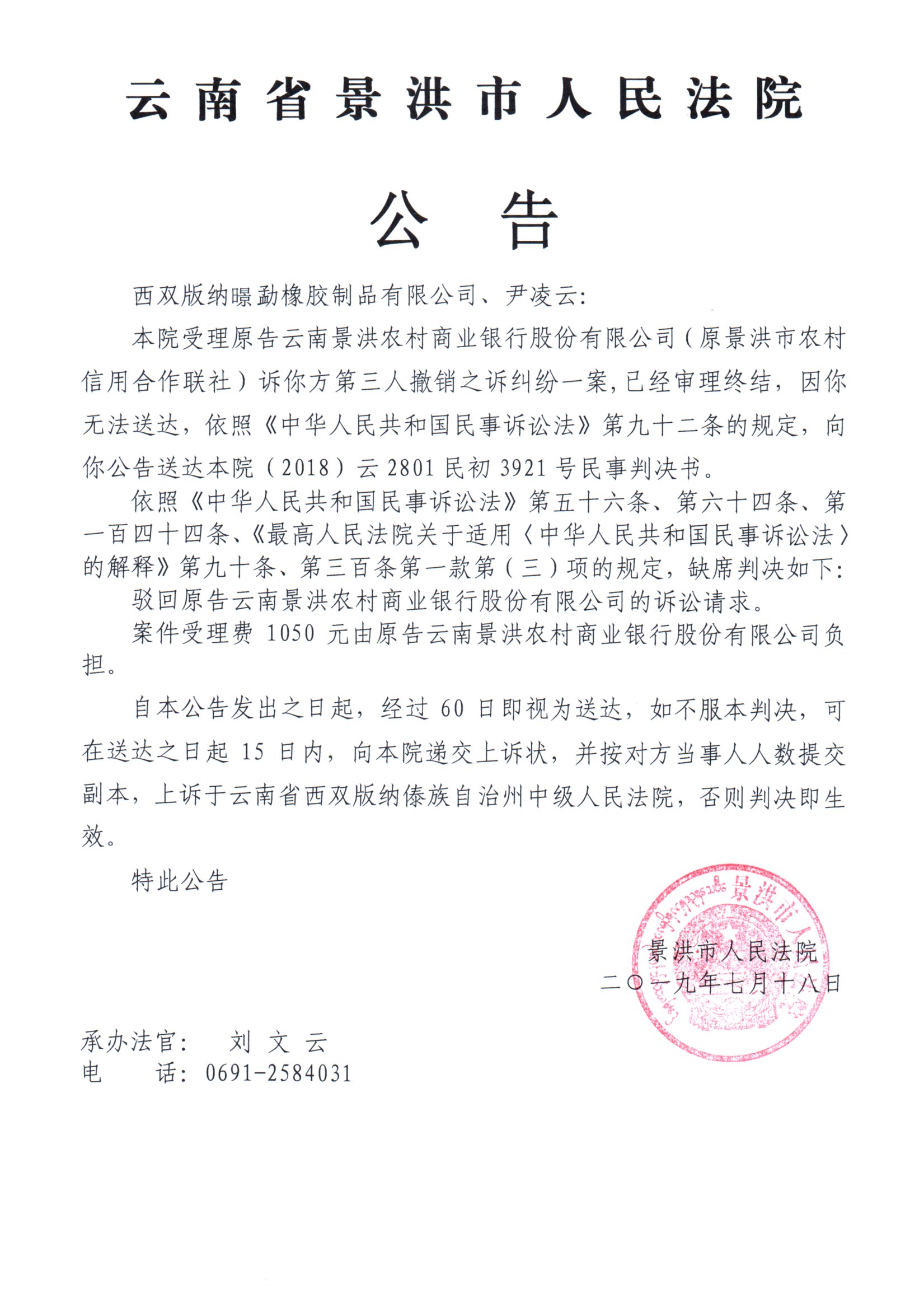 西双版纳暻勐橡胶制品有限公司、尹凌云