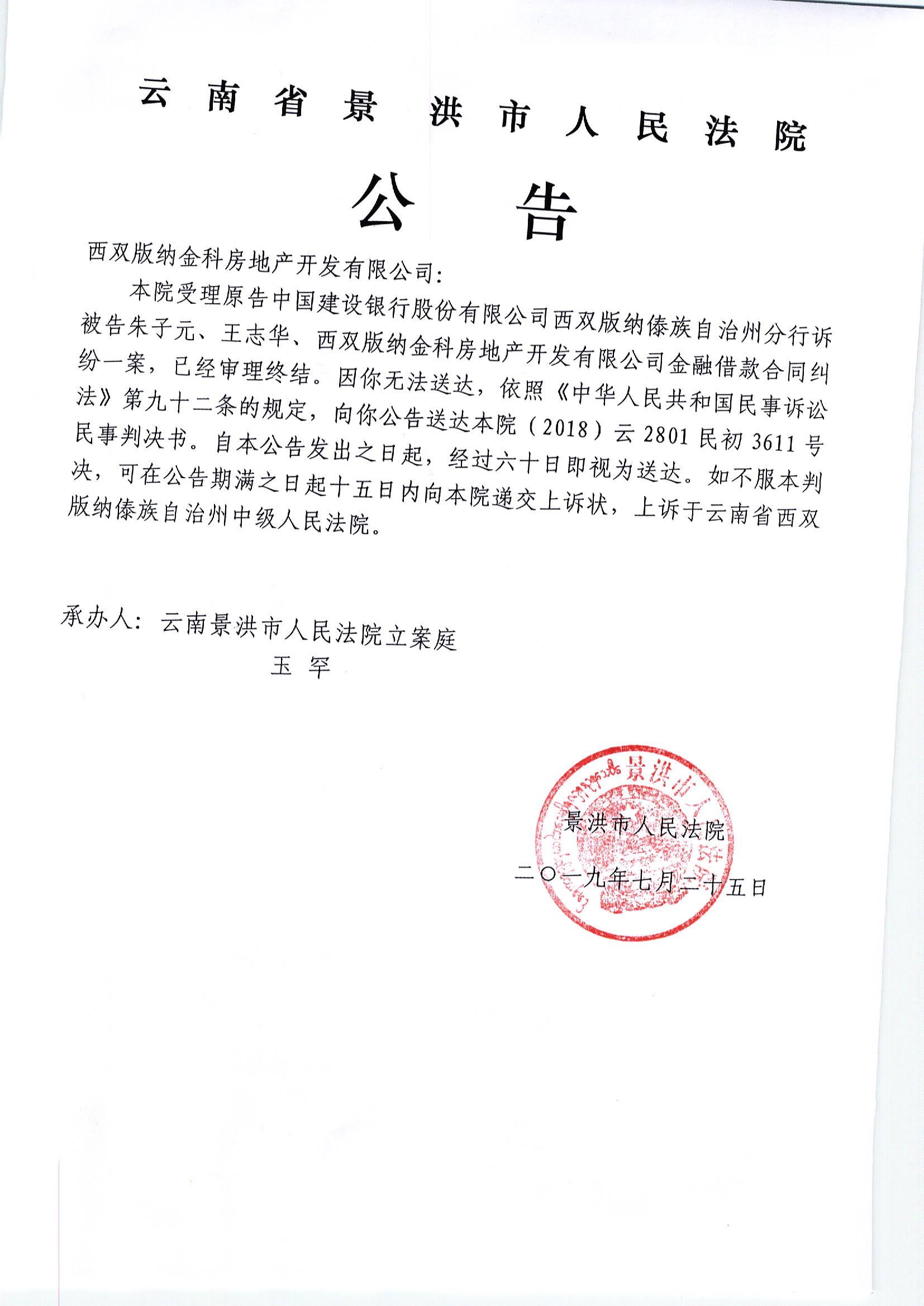 西双版纳金科房地产开发有限公司(公告)