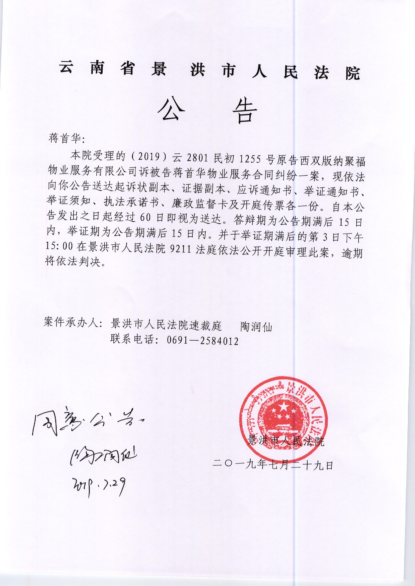 蒋首华(传票)
