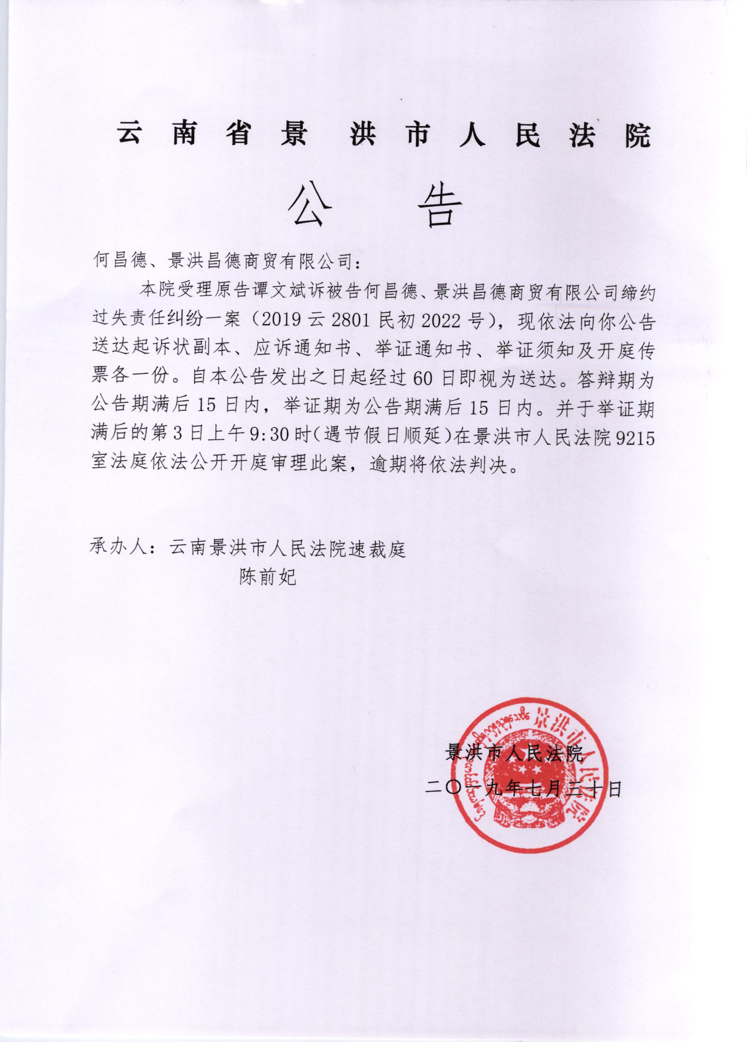 何昌德、景洪昌德商商贸有限公司