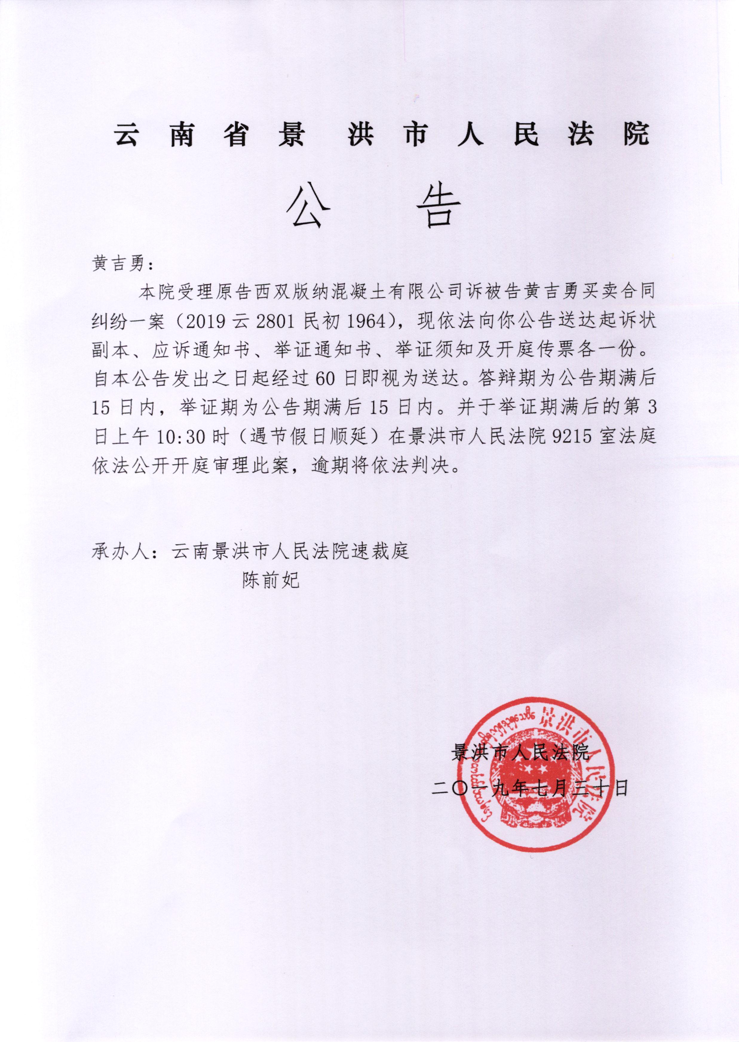 开庭公告: