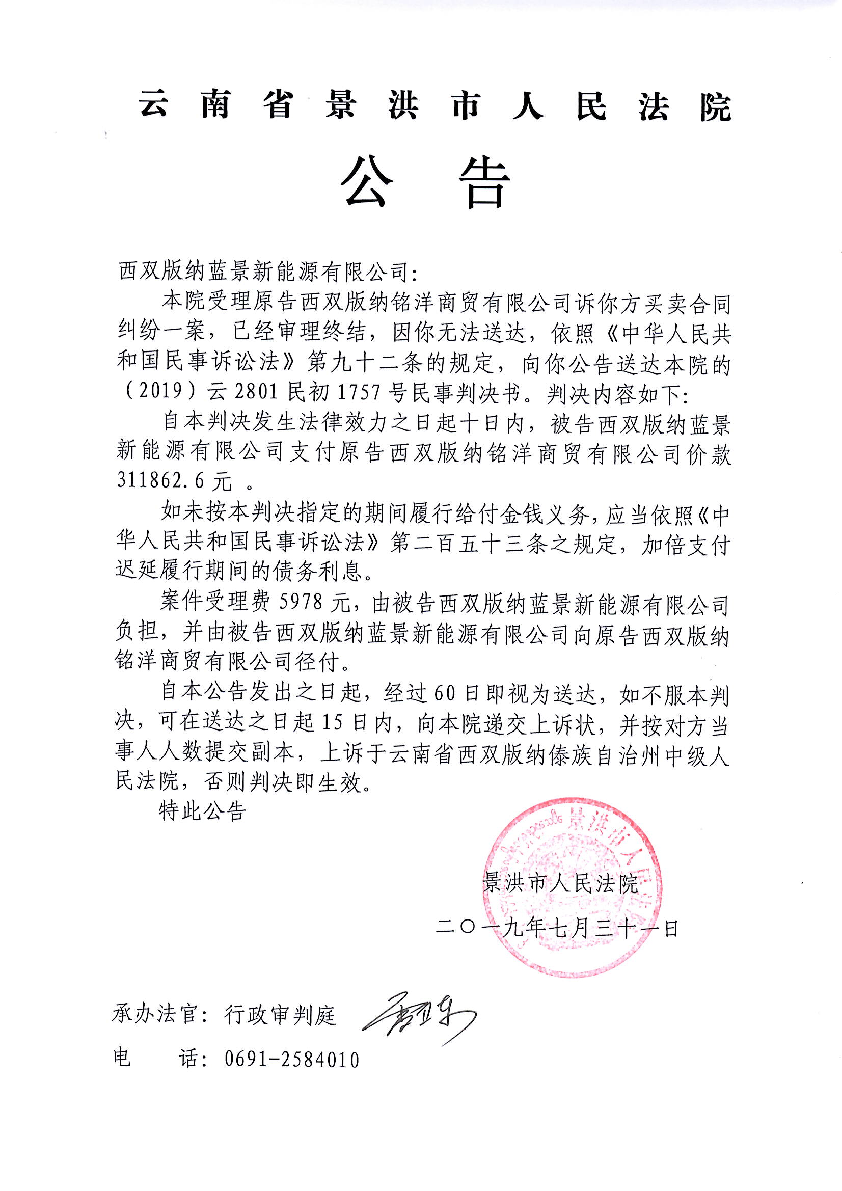 西双版纳蓝景新能源有限公司(判决)