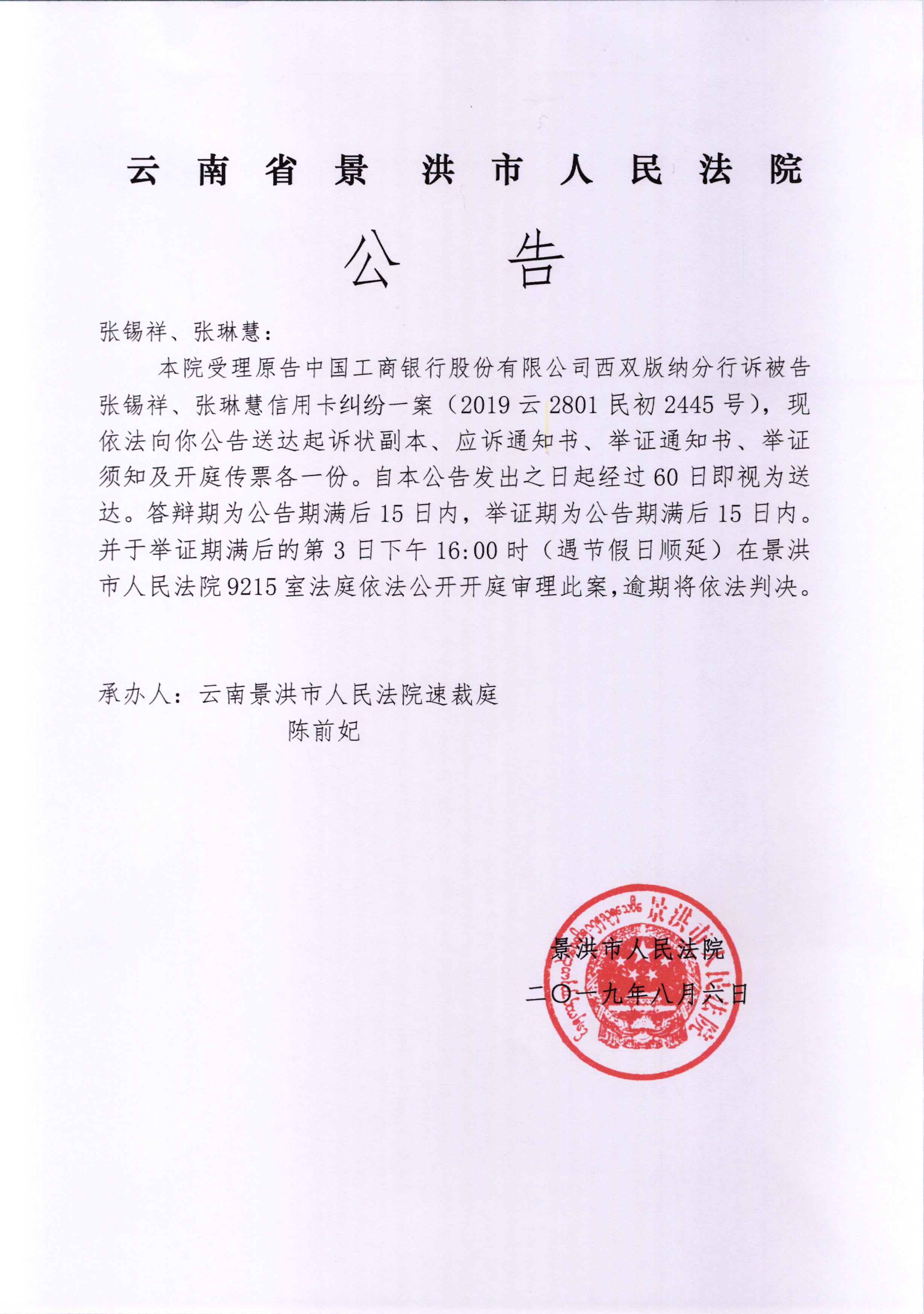 开庭公告: