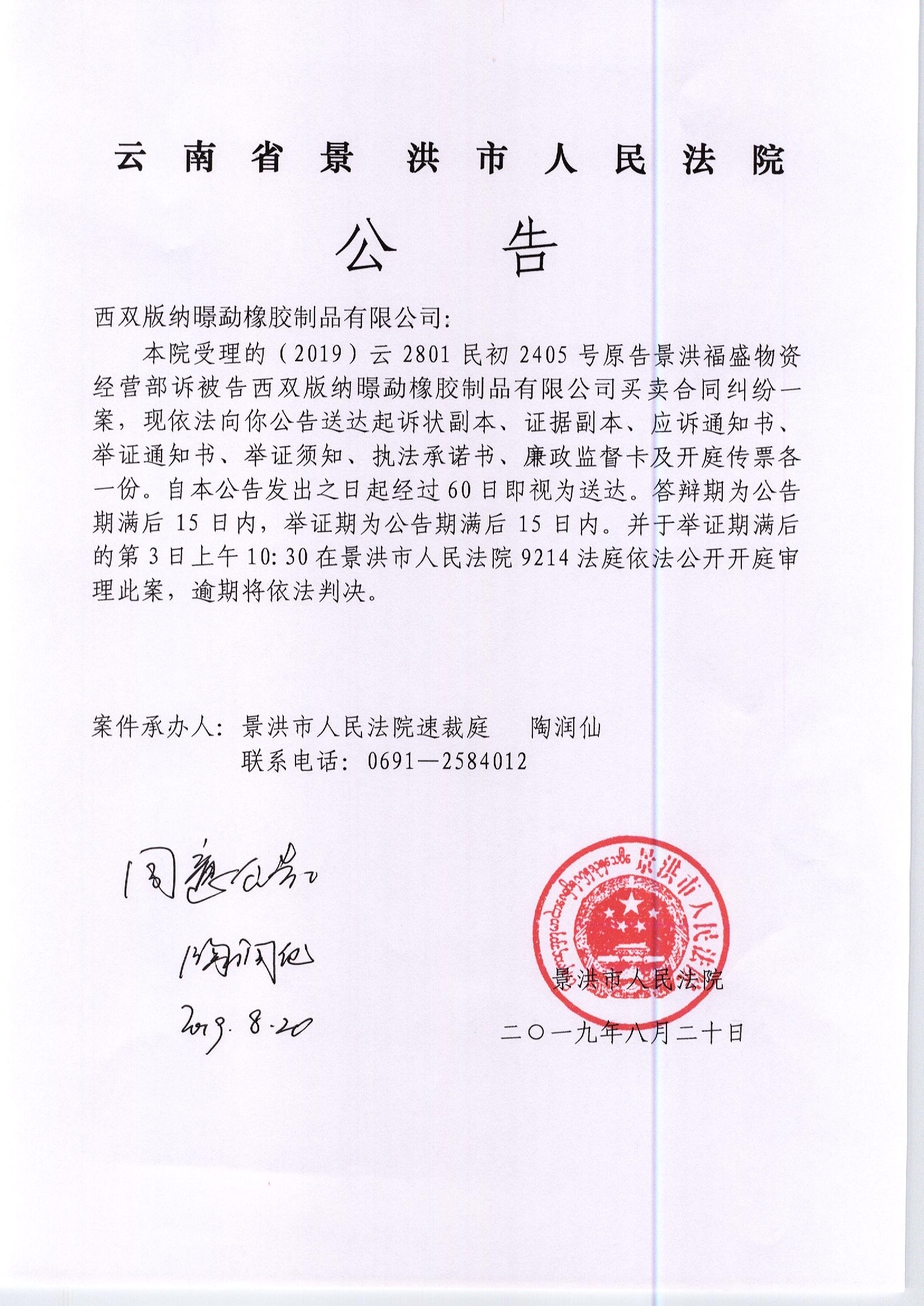 西双版纳暻勐橡胶制品有限公司2405号(传票)