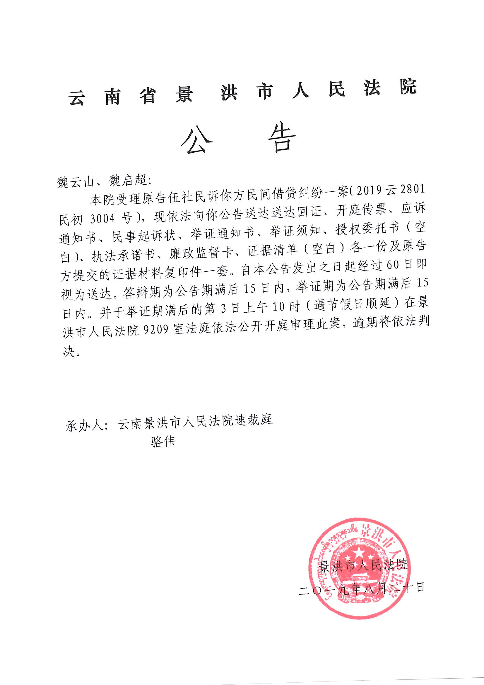开庭公告