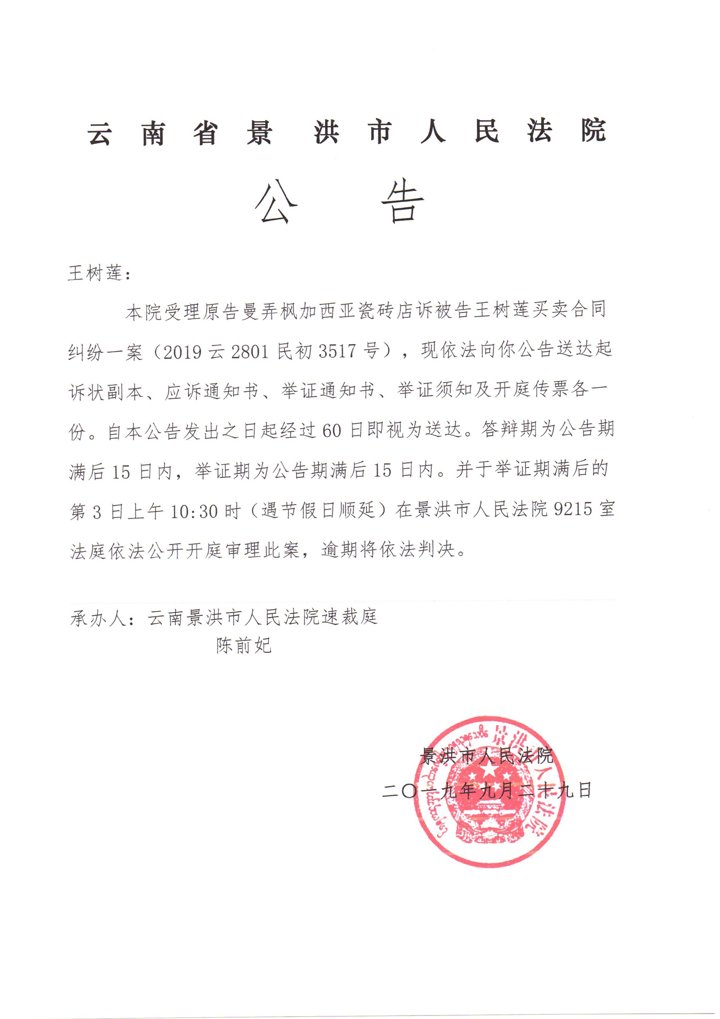 开庭公告: