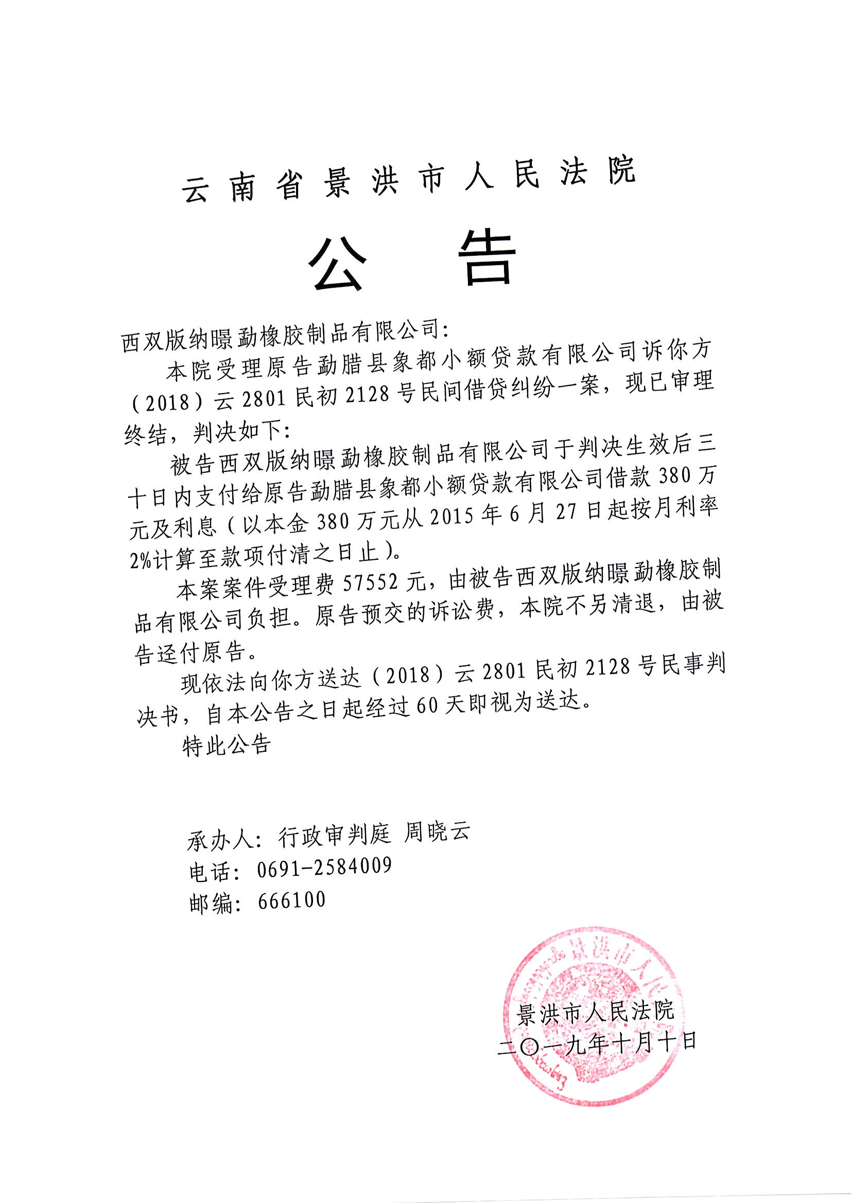 西双版纳暻勐橡胶制品有限公司(判决书公告)
