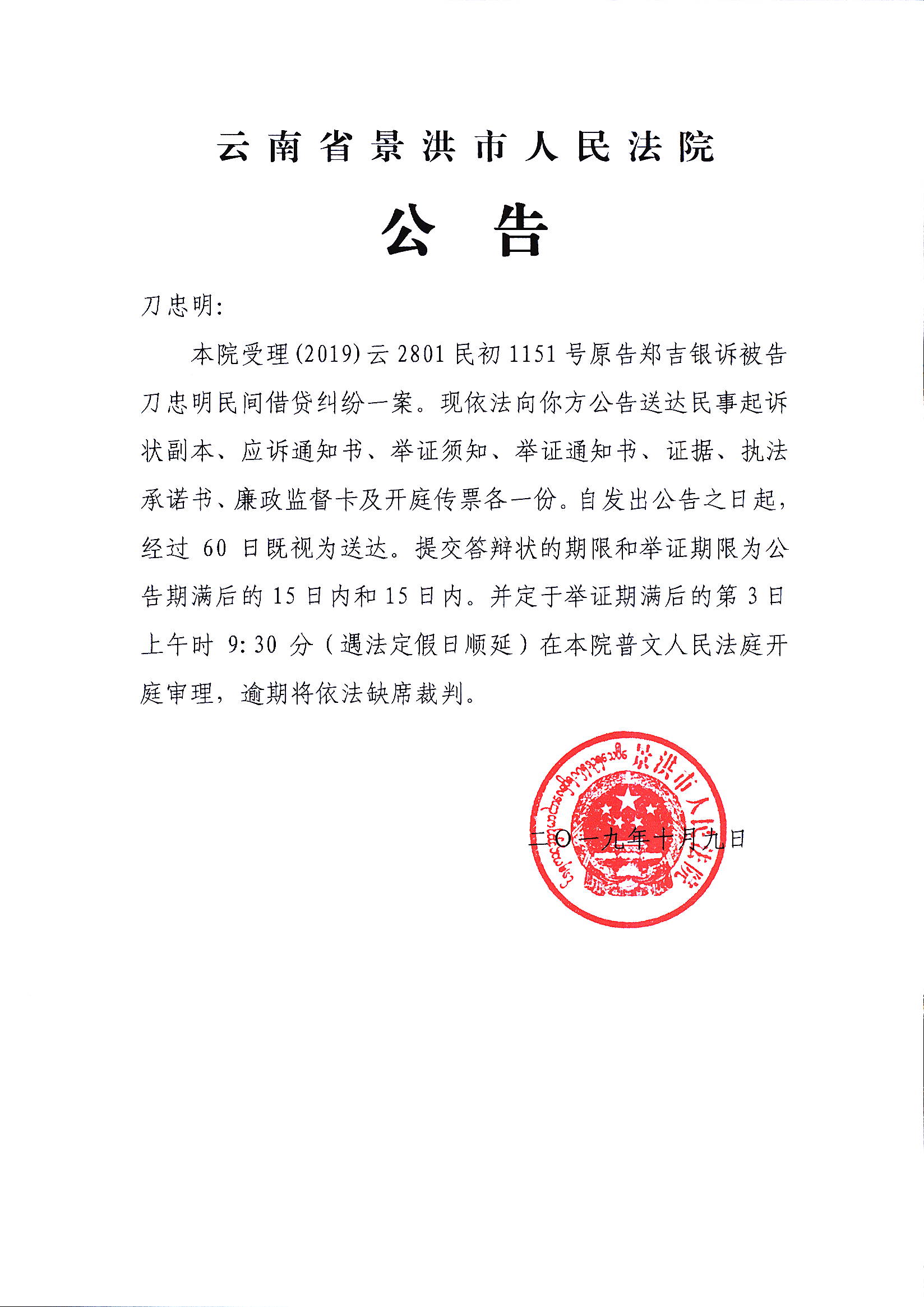 刀忠明(公告开庭传票)