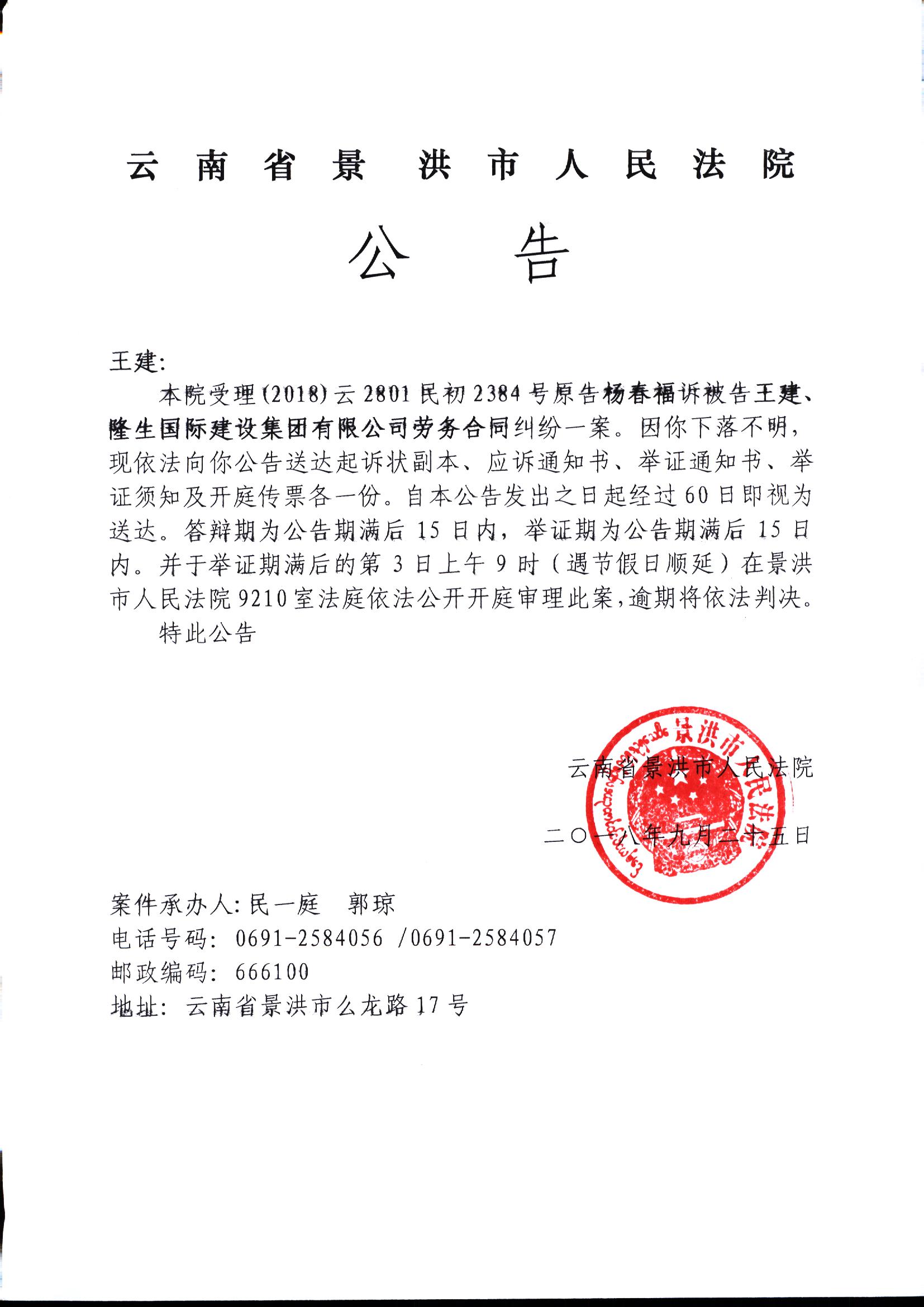 来源:景洪市人民法院 访问次数 :