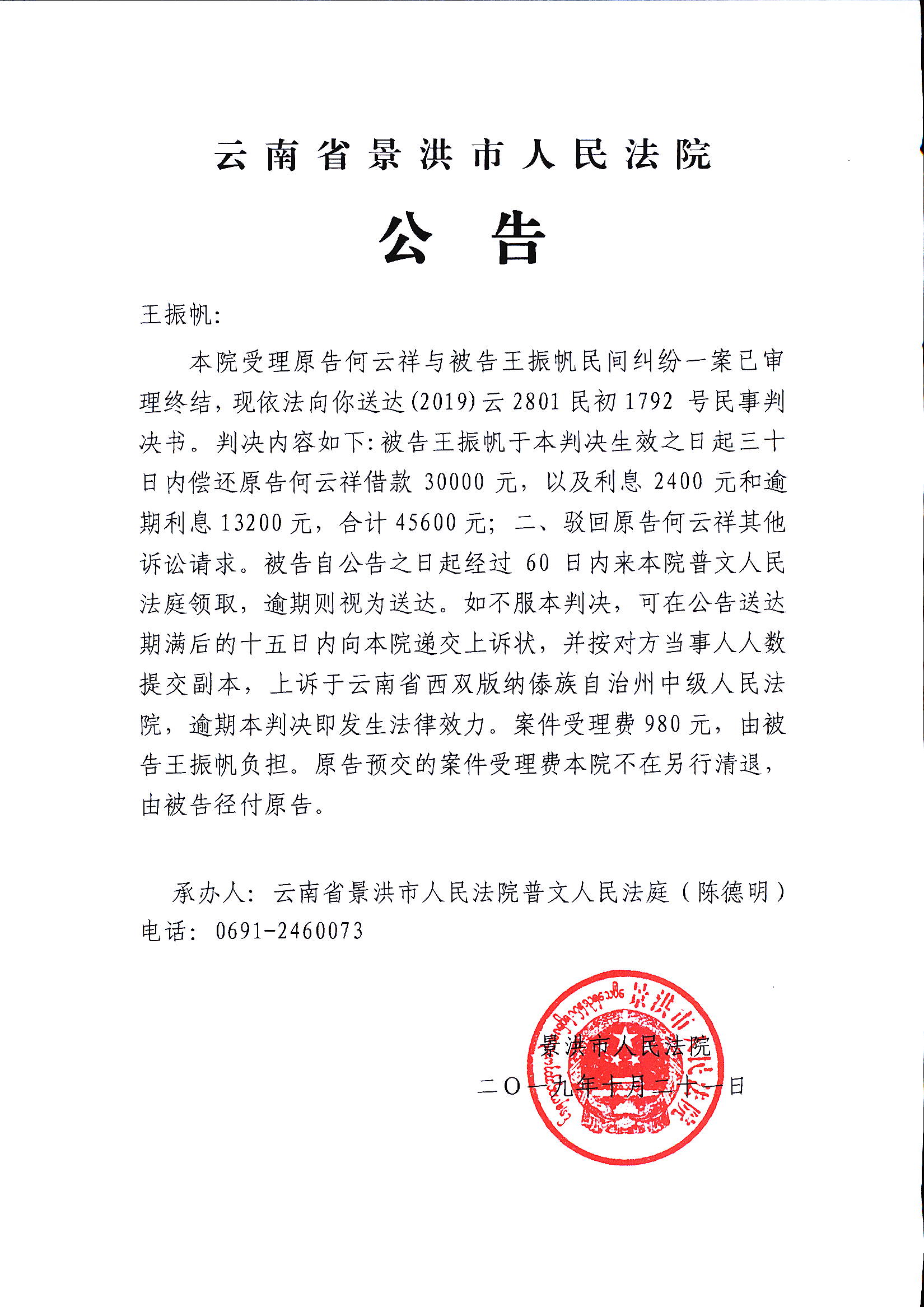 王振帆(公告民事判决书)