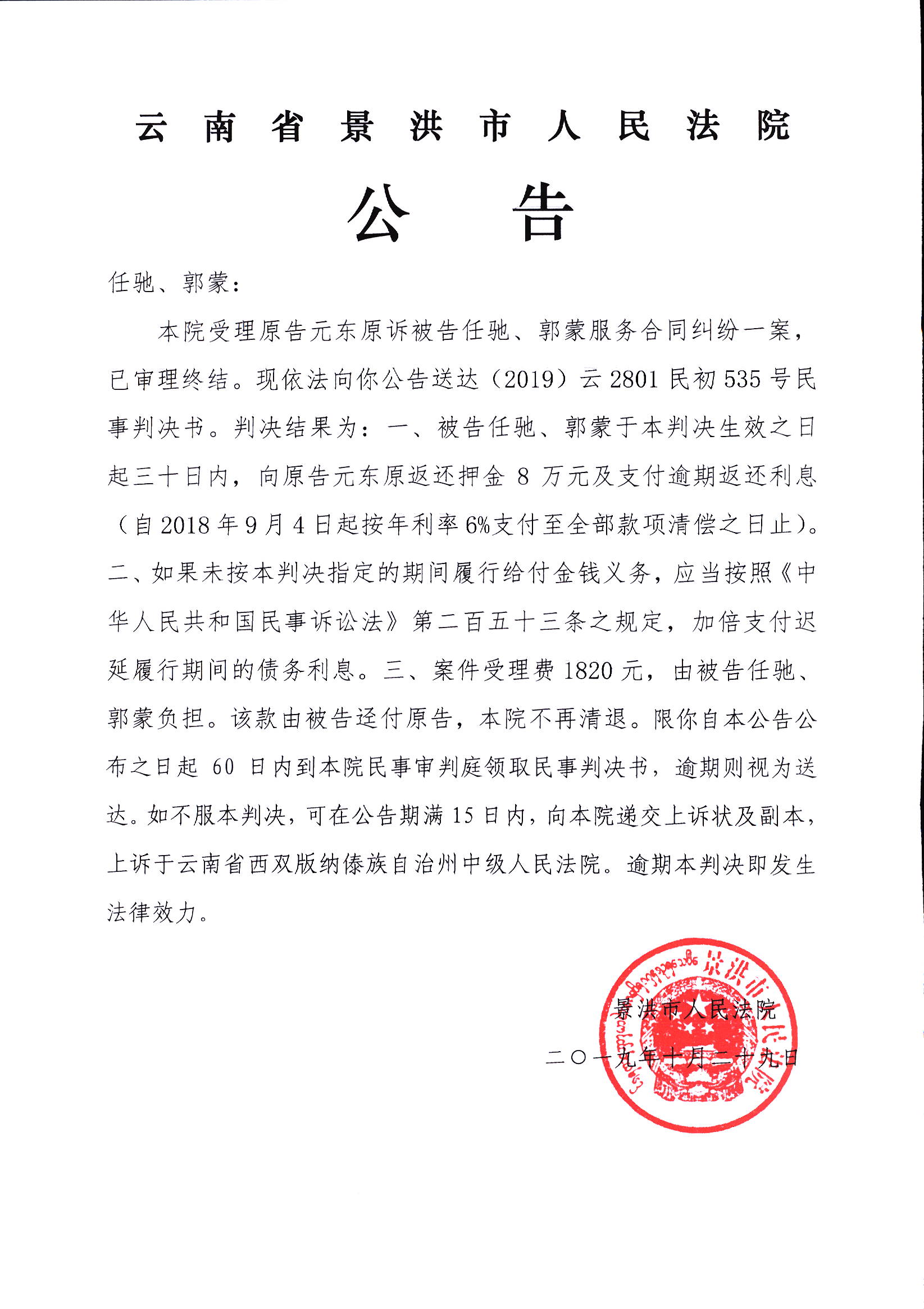 任驰、郭蒙(判决公告)