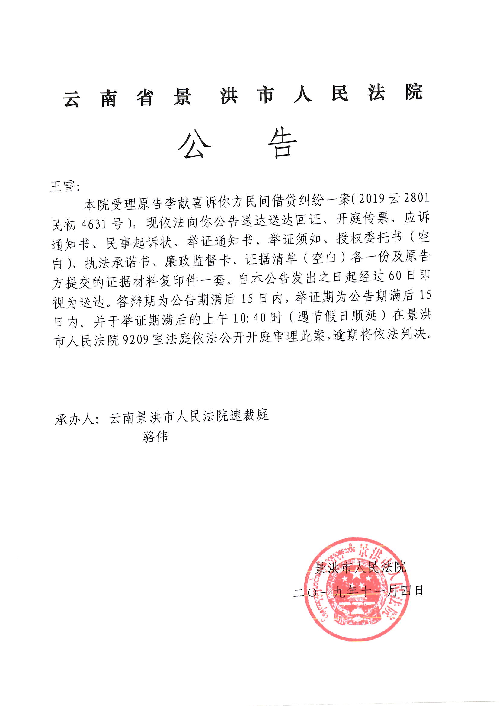 开庭公告