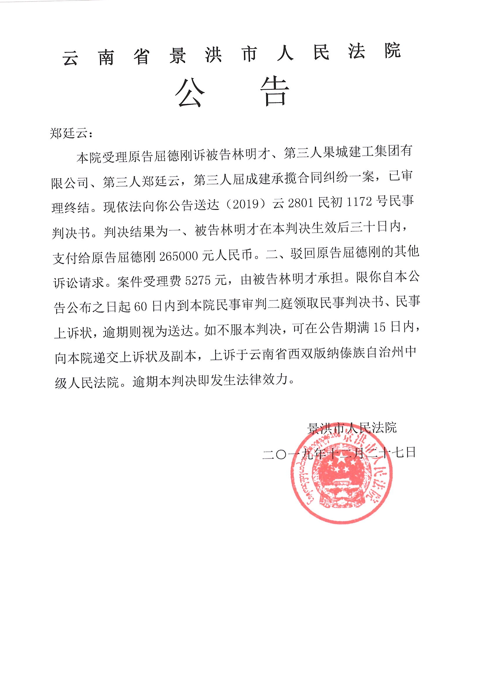 郑廷云(判决公告)