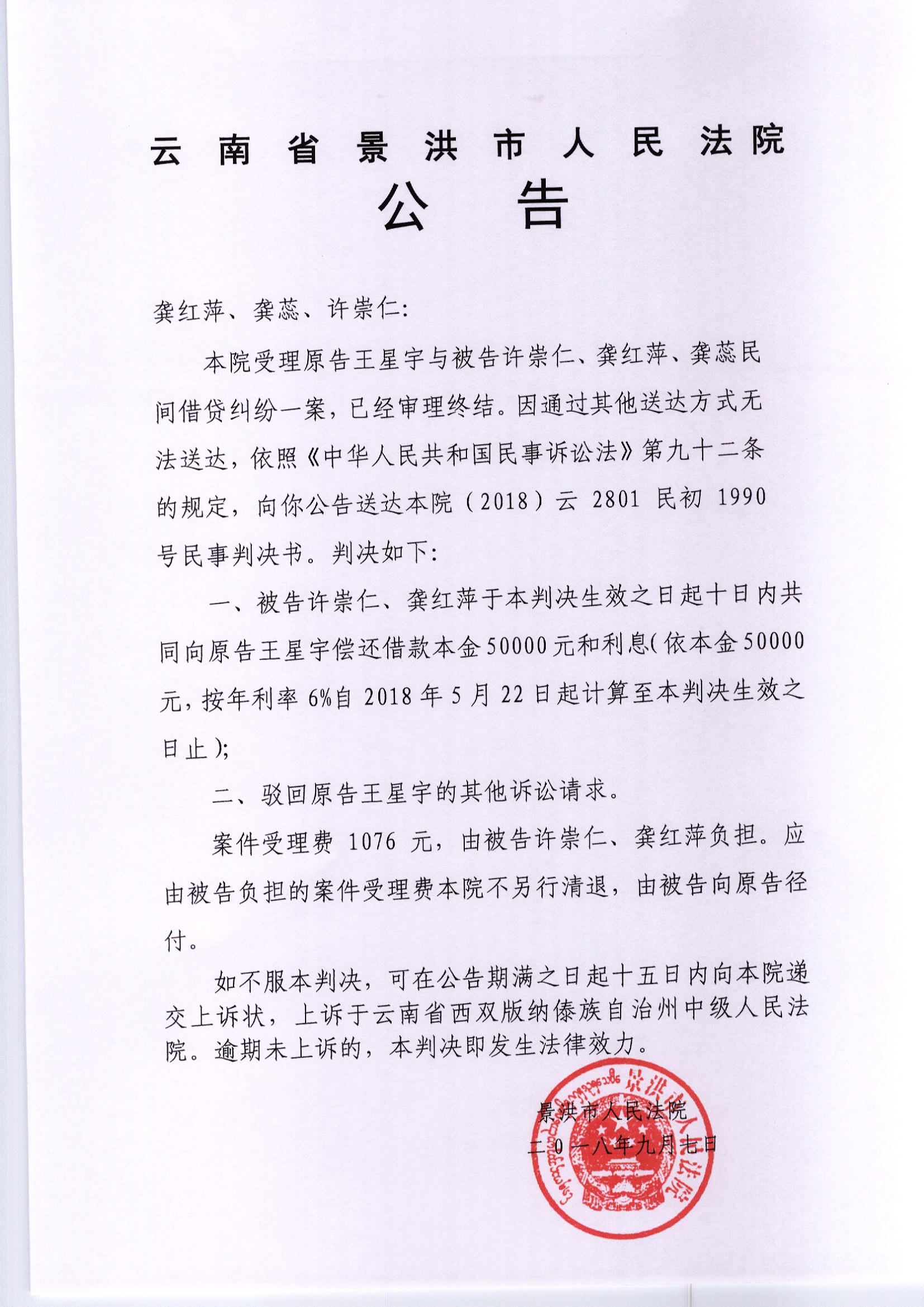 公告(龚蕊、龚红萍、许崇仁)