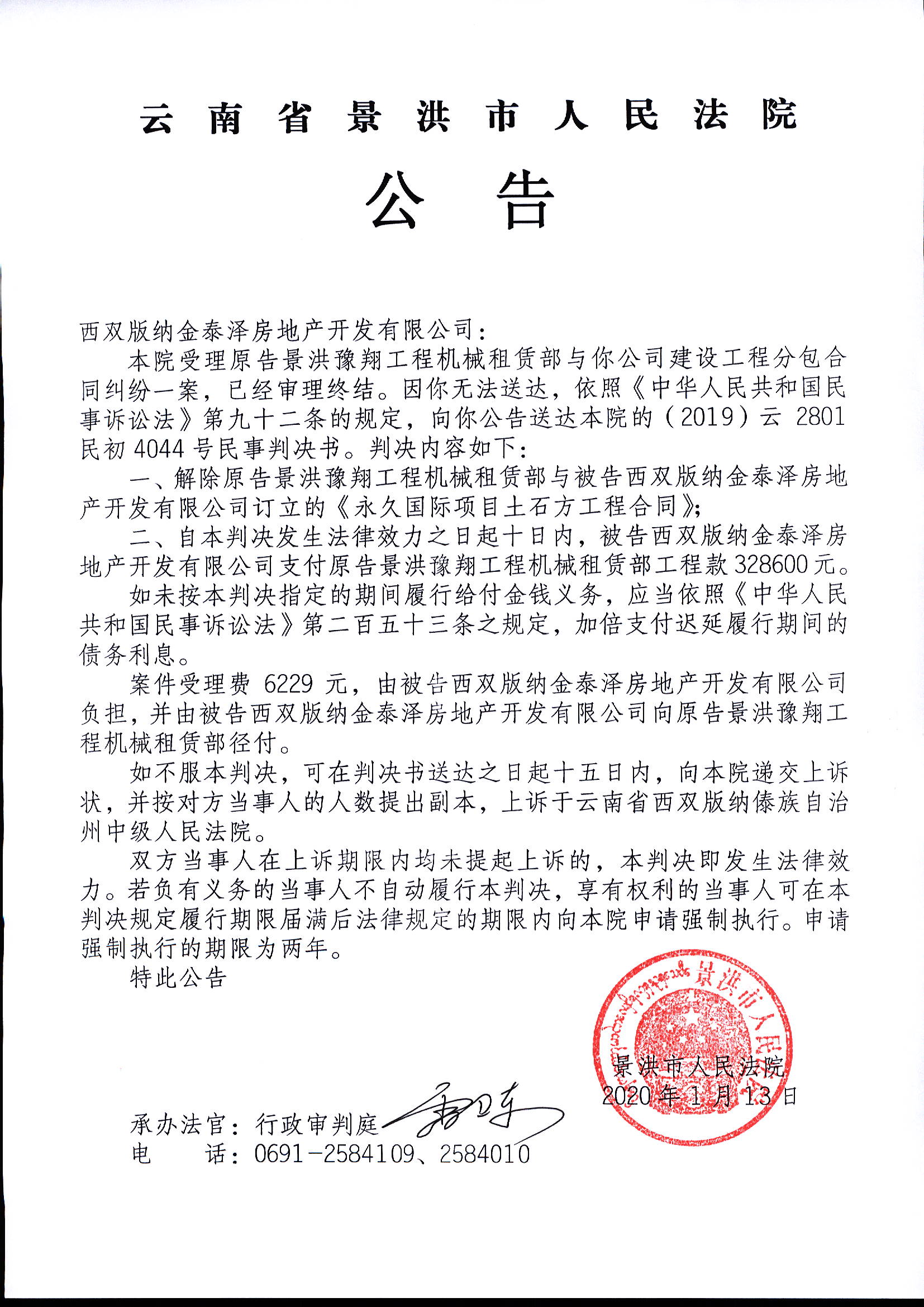 西双版纳金泰泽房地产开发有限公司(判决公告)。