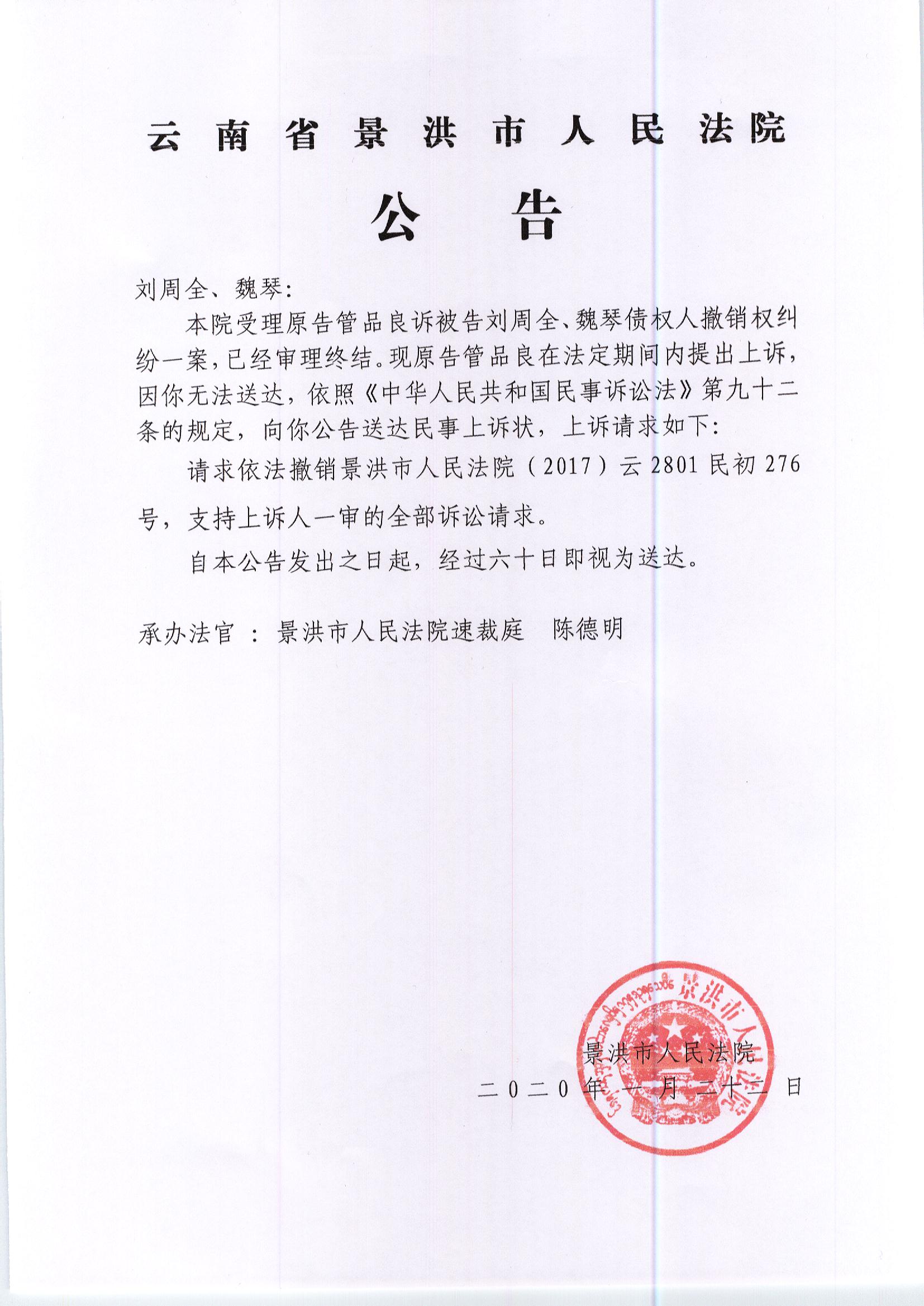 刘周全、魏琴(上诉状)
