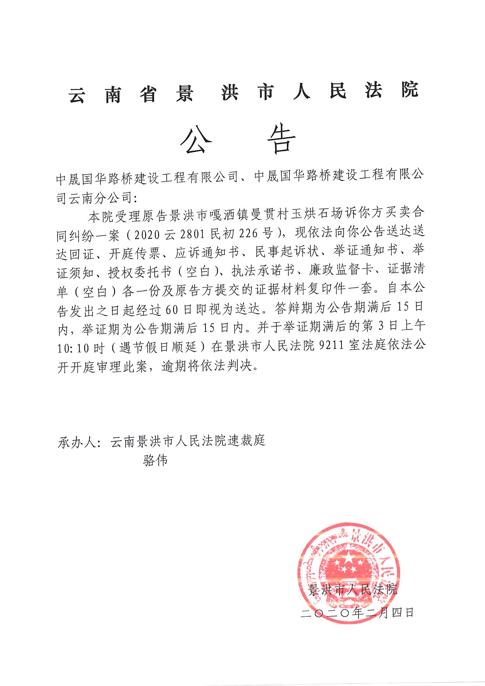 中晟国华路桥建设工程有限公司、中晟国华路桥建设工程有限公司云南分公司