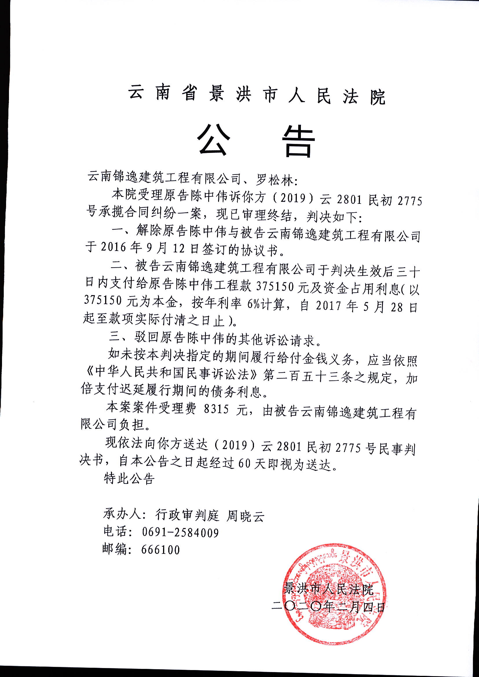 云南锦逸建筑工程有限公司、罗松林(判决公告)