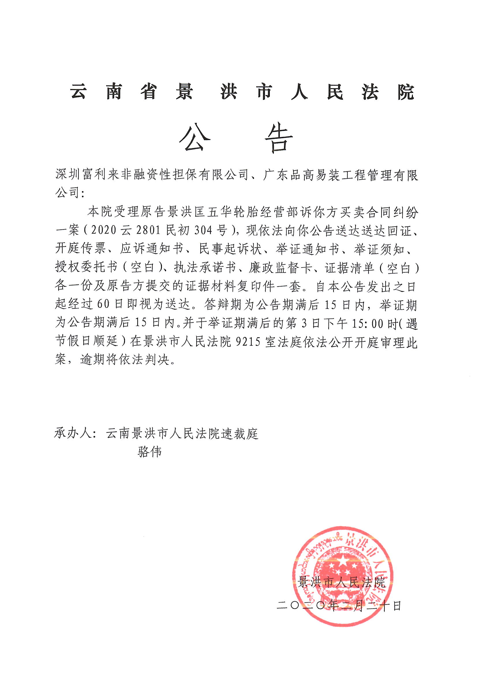 深圳富利来非融资性担保有限公司、广东品高易装工程管理有限公司