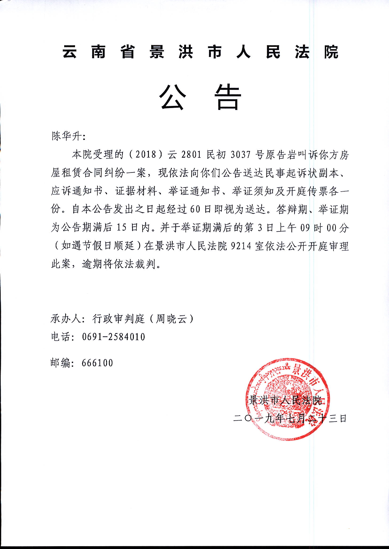 陈华升(开庭公告)
