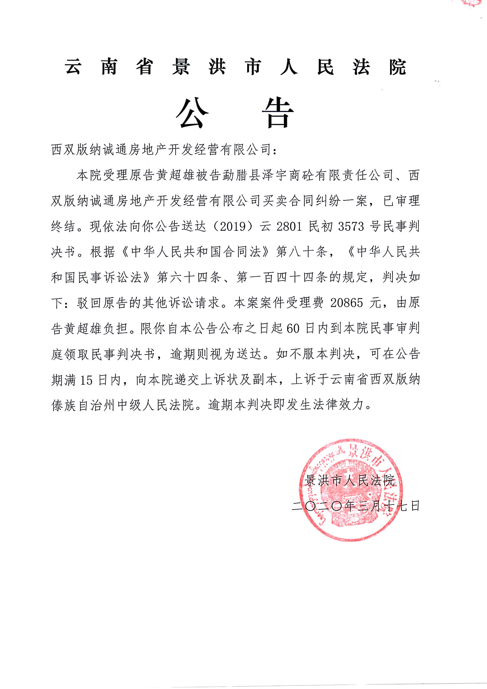 西双版纳诚通房地产开发经营有限公司(判决书公告)
