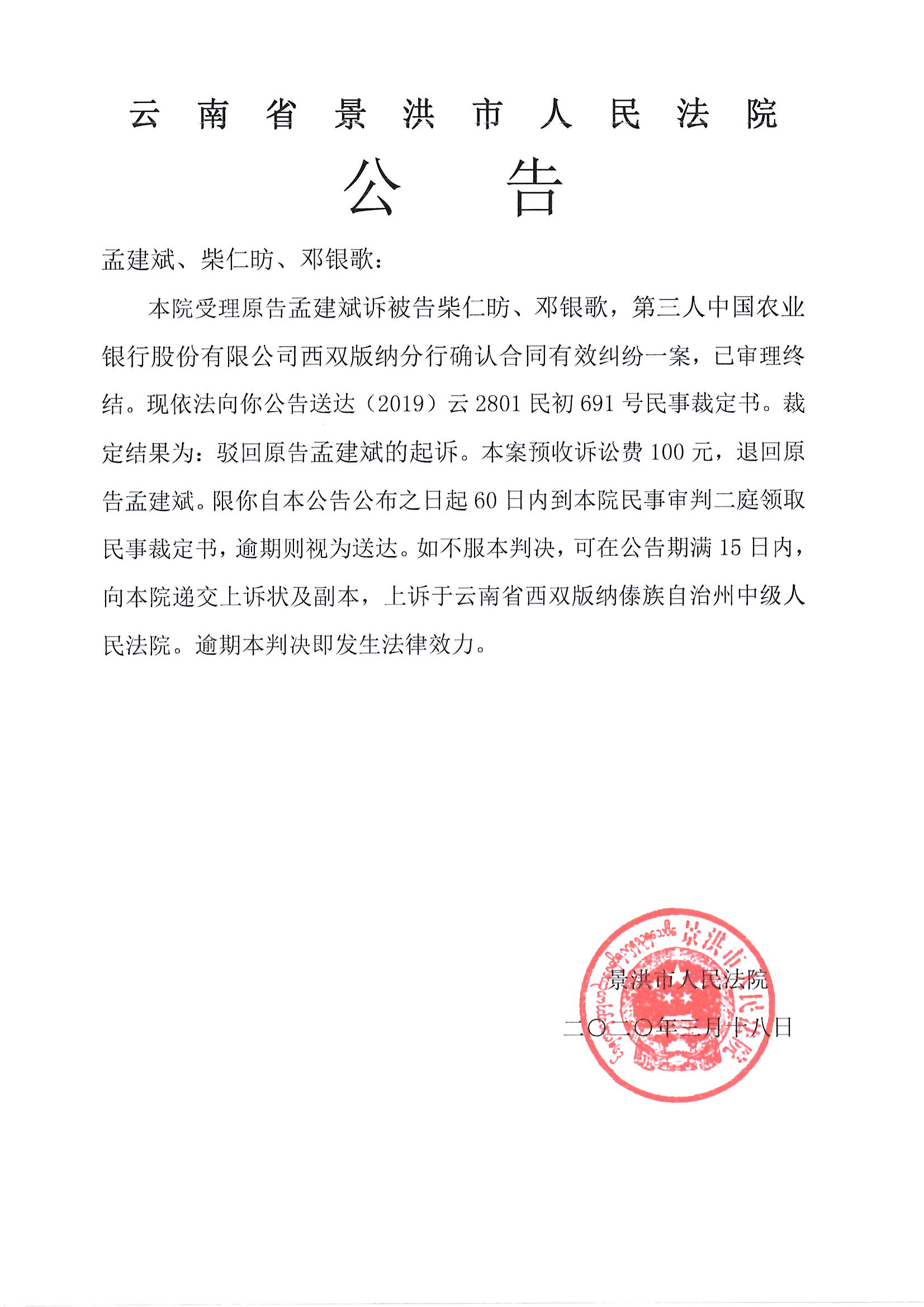 孟建斌、柴仁昉、邓银歌(裁定公告)