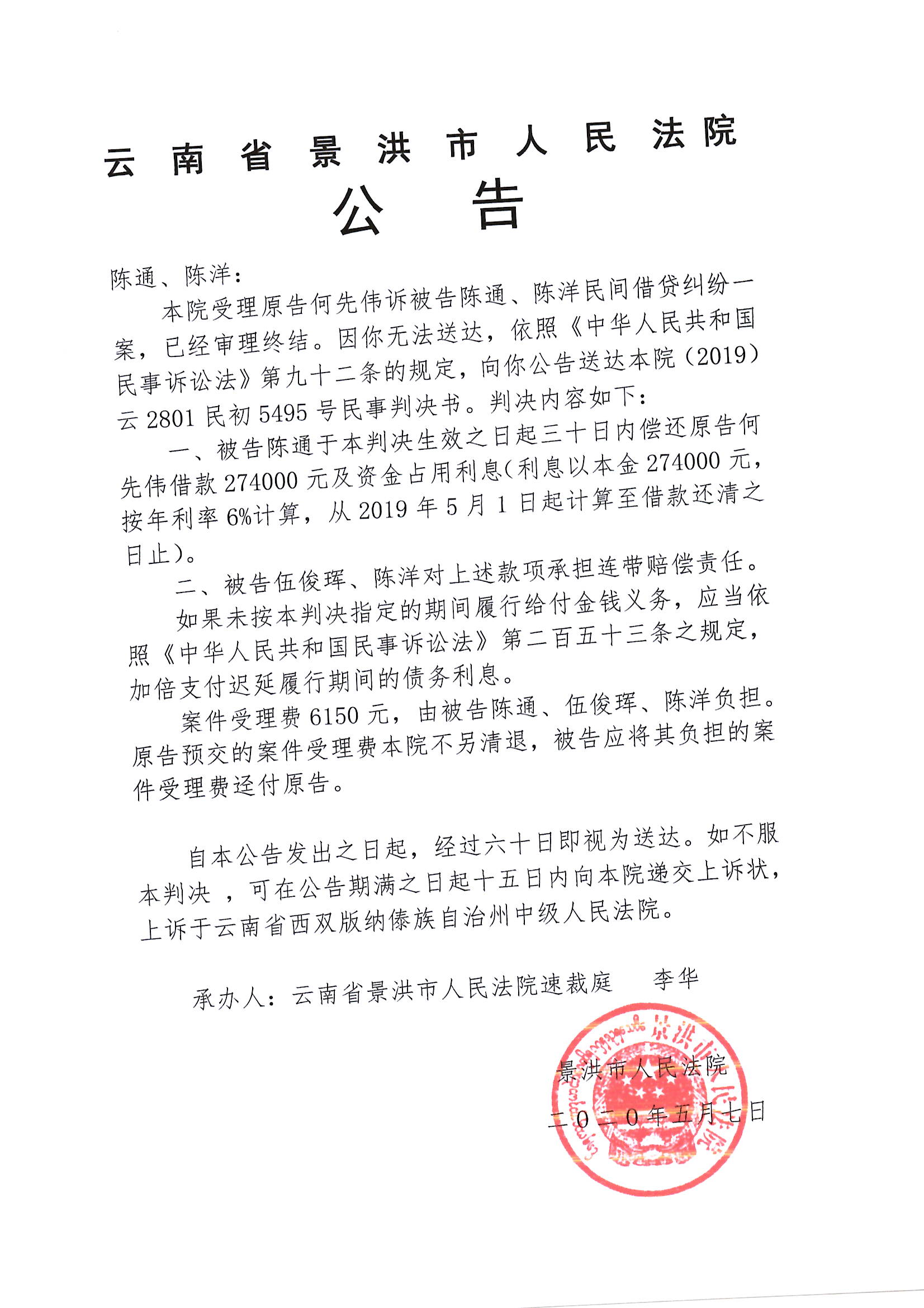 陈通、陈洋(判决公告)