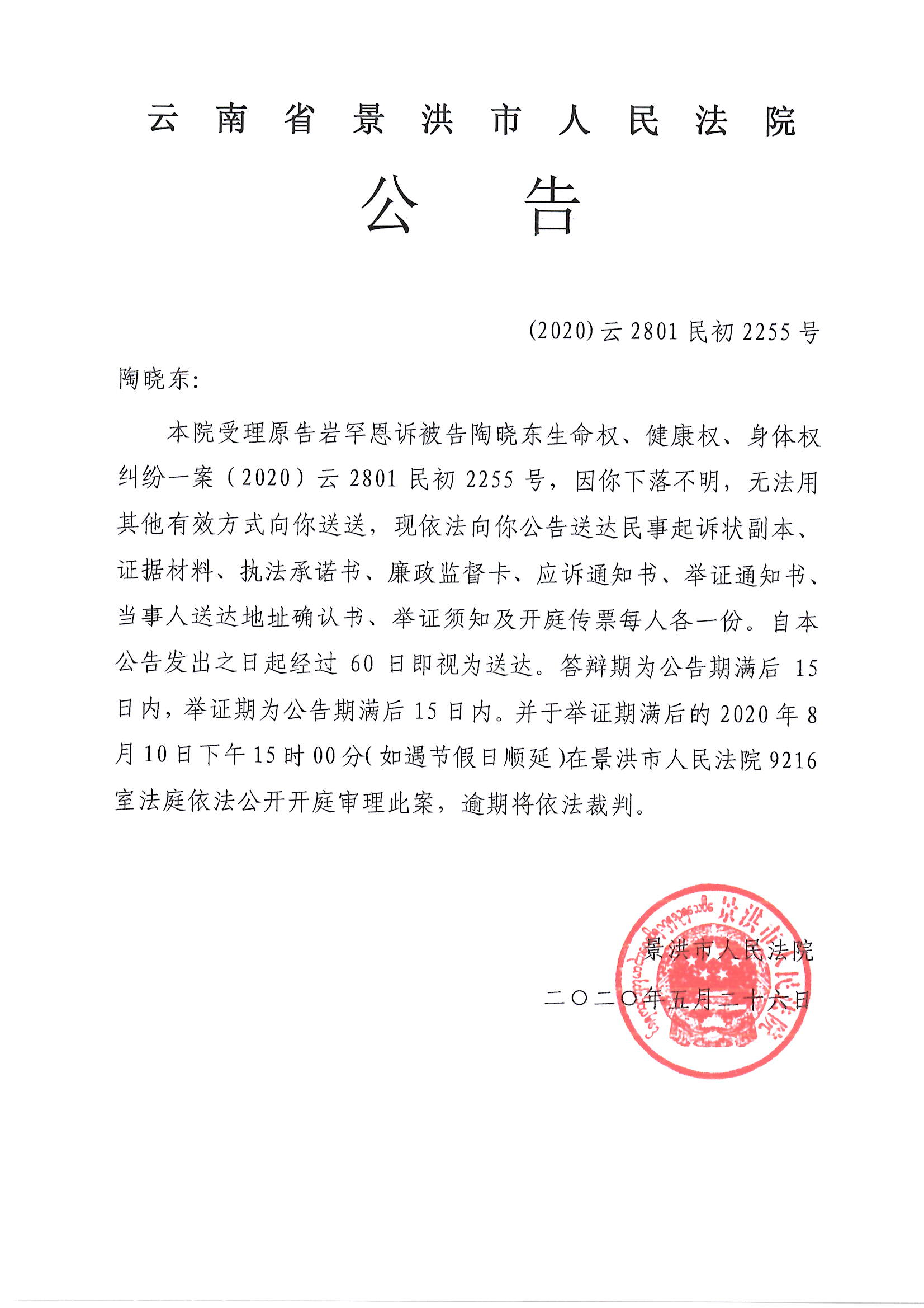 陶晓东(开庭公告)