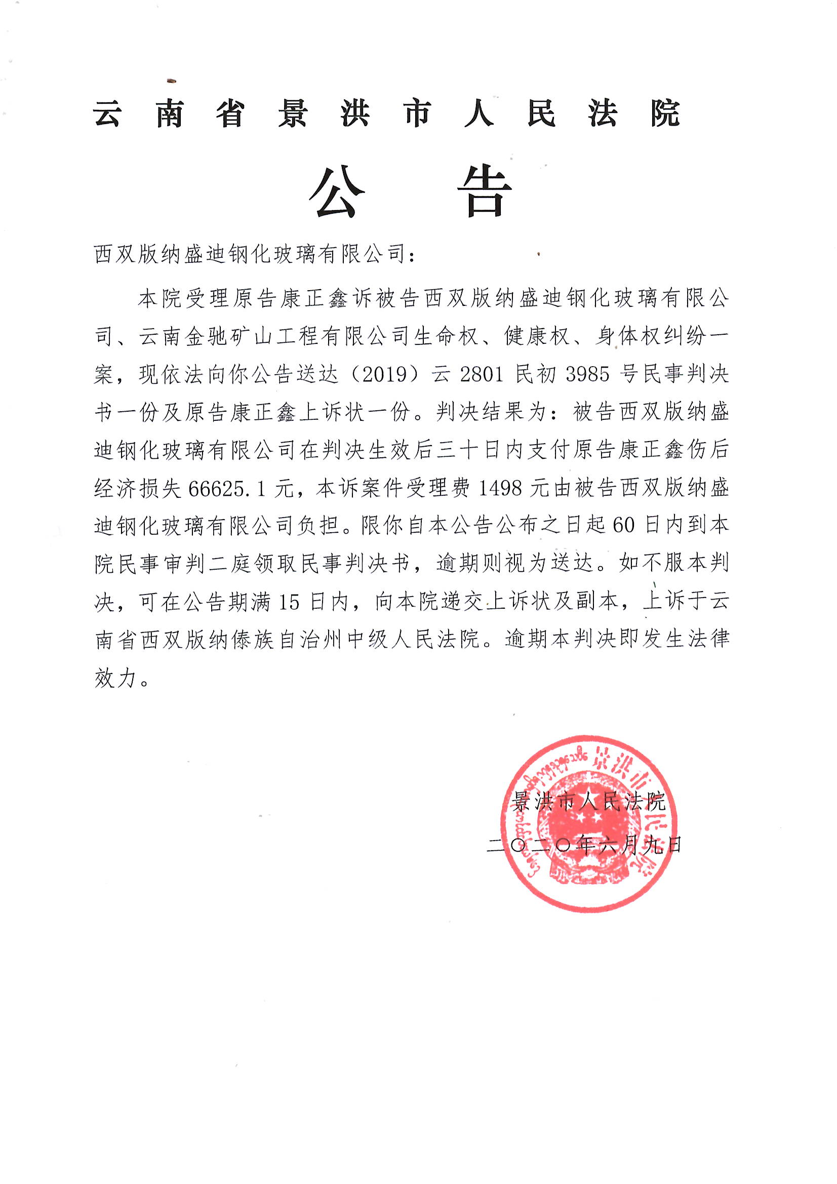 西双版纳盛迪钢化玻璃有限公司判决书、上诉状公告