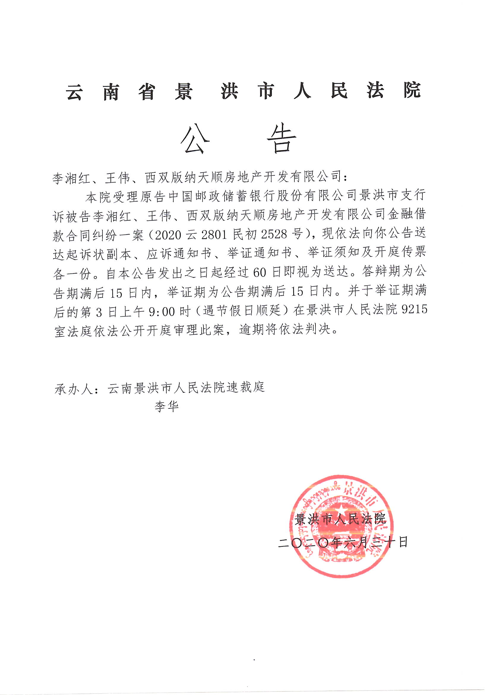 李湘红、王伟、西双版纳天顺房地产开发有限公司
