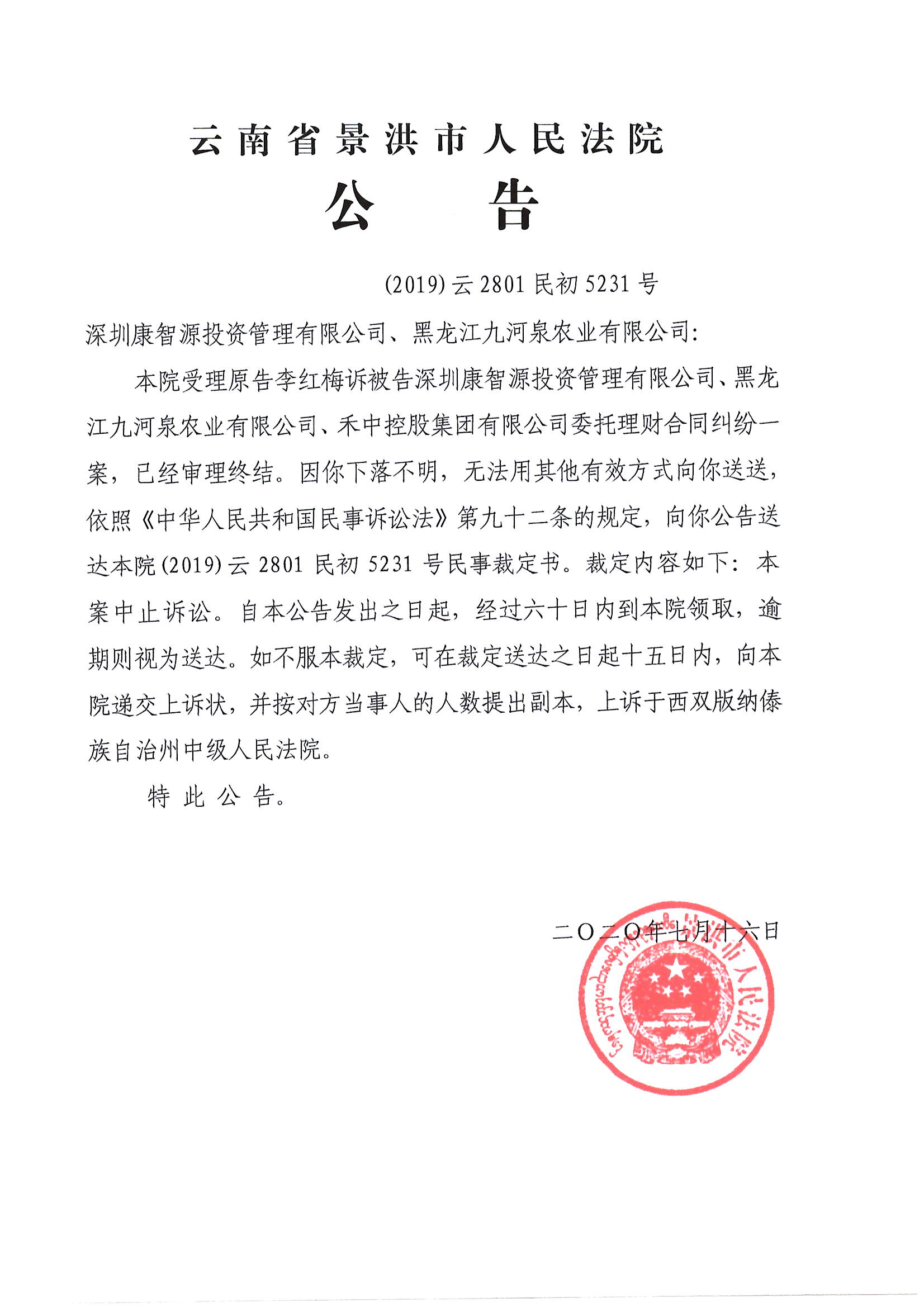 深圳康智源投资管理有限公司、黑龙江九河泉农业有限公司