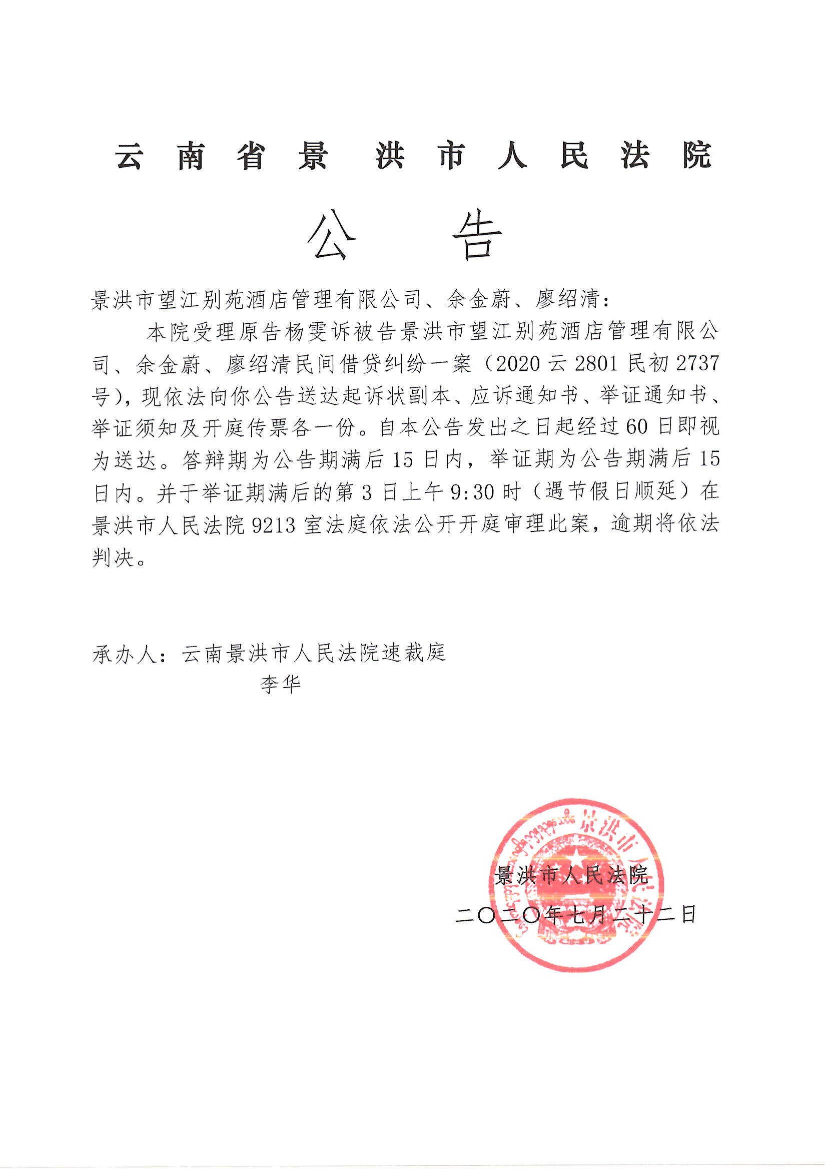 景洪市望江别苑酒店管理有限公司、余金蔚、廖绍清